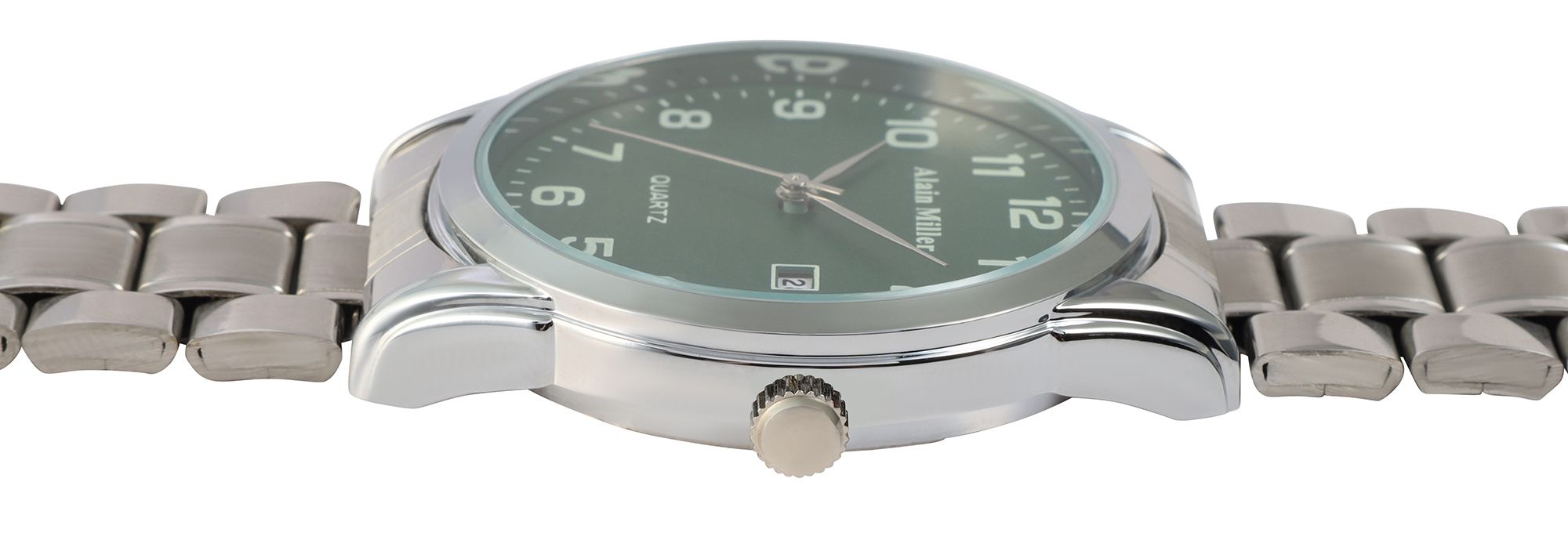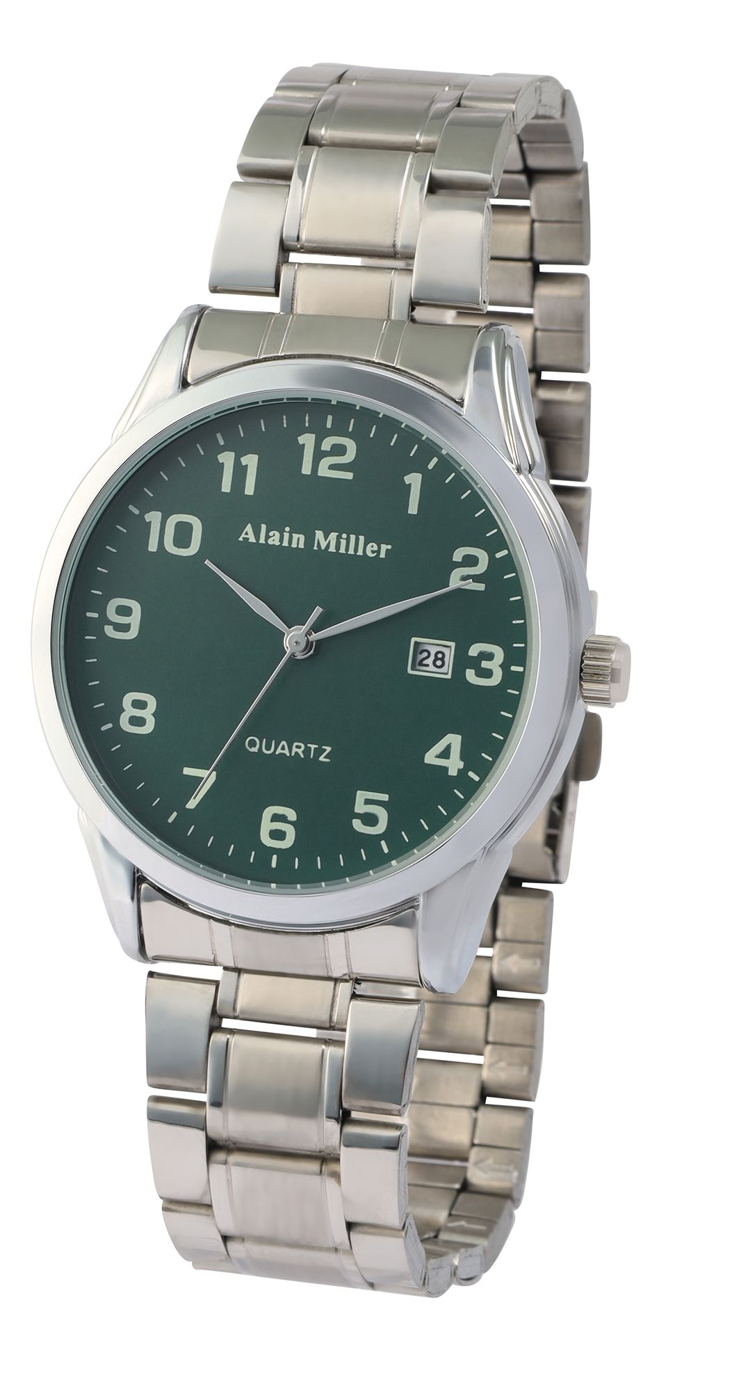 Alain Miller herenhorloge Ø 40 mm, schakelband, roestvrij staal, zilverkleurig/groen