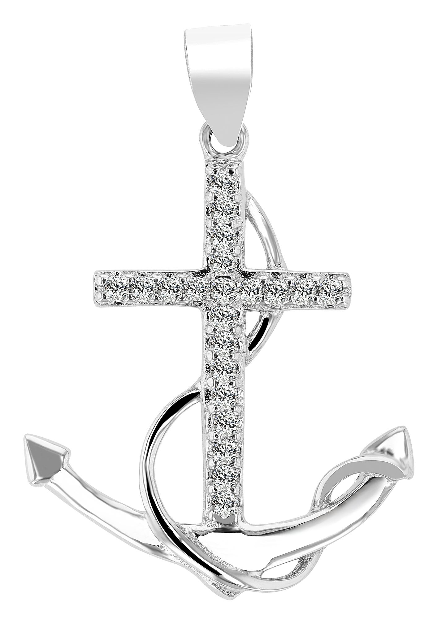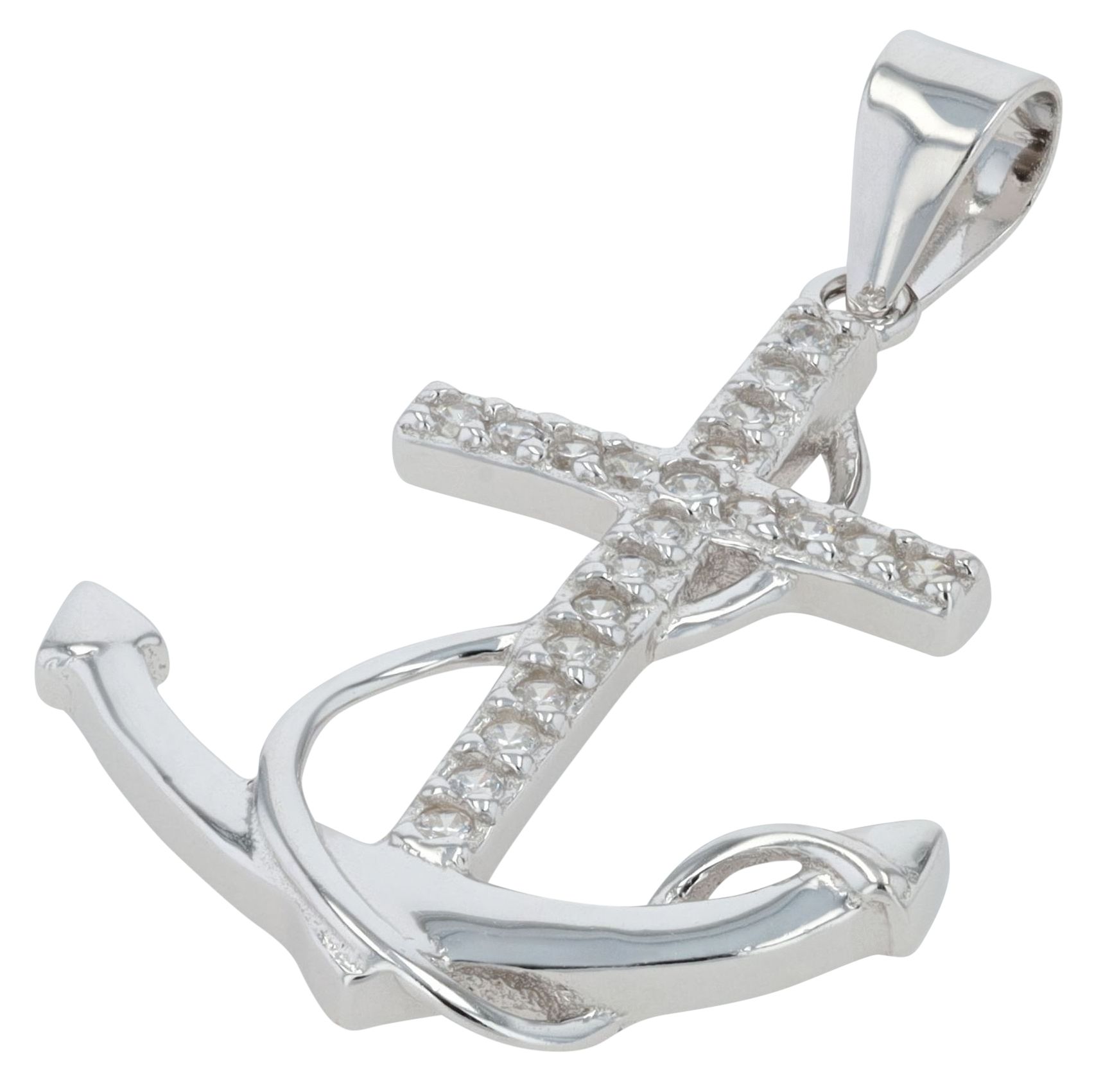Productinformatie ""Aleida" - Anker mit Schiffstau Anhänger, 925/ rh Echt Silber, mit weißen Zirkonen"