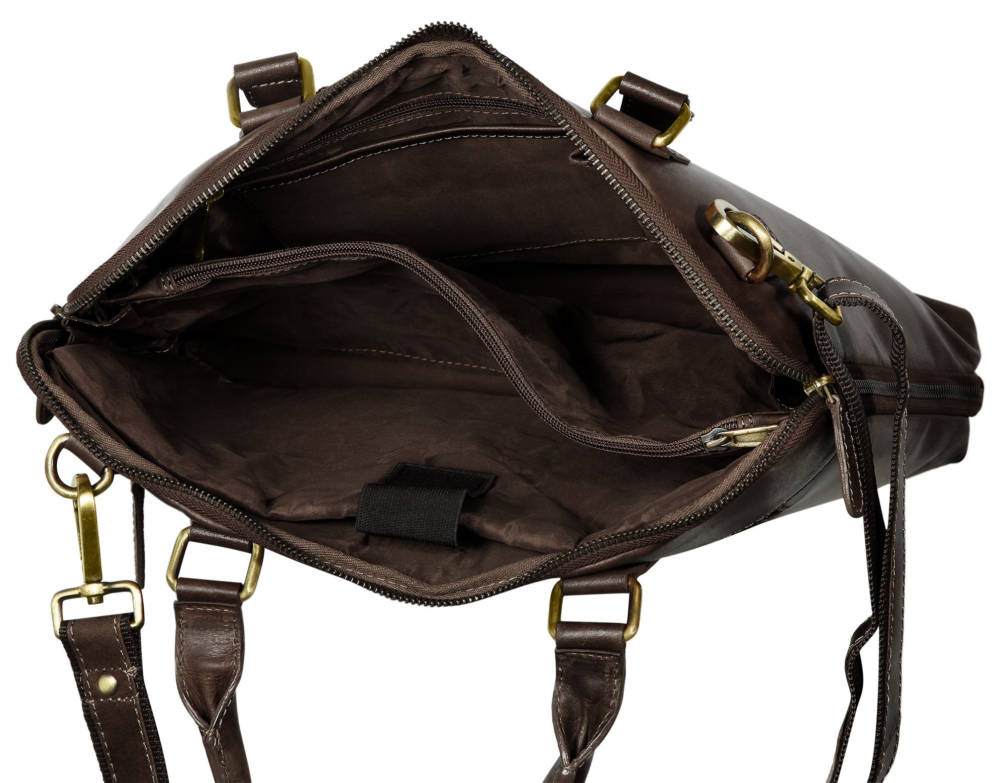 Deze schoudertas van het merk Leonardo Verrelli is gemaakt van rundleer en heeft een eenvoudige look met een licht antieke afwerking. De tas is de perfecte metgezel, want hij heeft veel opbergruimte en talloze vakjes en kan voor veel verschillende gelegenheden worden gebruikt. Dankzij het ideale formaat kan hij perfect over de schouder of crossbody gedragen worden. Hij heeft ook een handvat en een verstelbare en afneembare schouderriem van een combinatie van stof en leer, die kan worden aangepast tot een maximale totale lengte van ongeveer 150 cm. Het hoofdvak kan worden geopend en gesloten met een rits. Binnenin zijn er nog twee ritsvakken, twee steekvakken en een groot binnenvak, dat wordt verdeeld door een tussenschot. Het ritsvak aan de buitenkant biedt extra opbergruimte. Deze stijlvolle tas is een tijdloze allrounder die bij veel gelegenheden gedragen kan worden. Bovendien is niet alleen het ontwerp indrukwekkend, maar ook de mogelijkheid om al je belangrijke spullen in op te bergen. Of het nu gaat om een rustige wandeling, winkelen of een uitstapje - deze handtas is de ideale metgezel gemaakt van natuurlijke en duurzame materialen. De ongevulde tas is 27 cm lang, 40 cm breed en 7 cm dik.