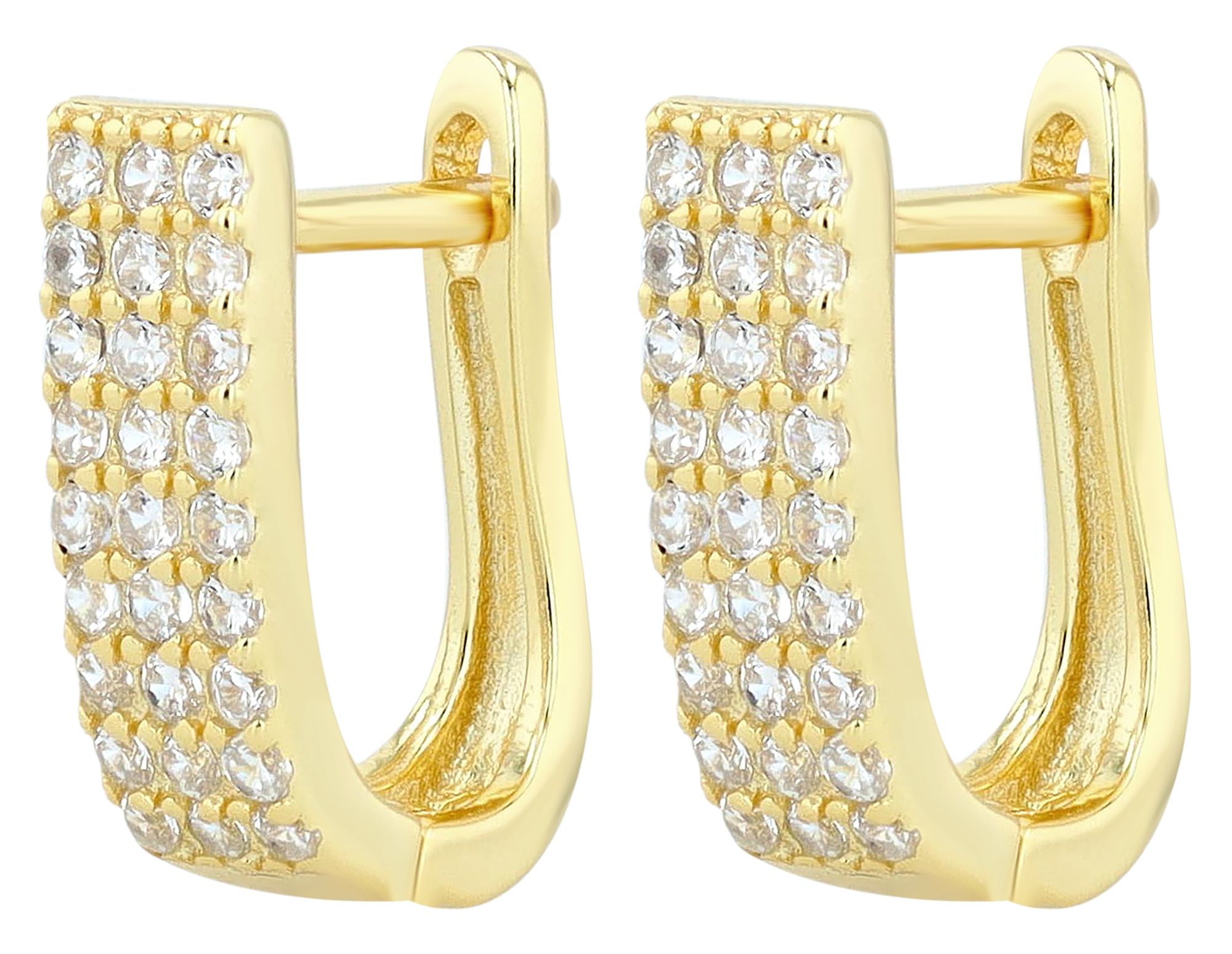 Productinformatie ""Alia" 925/- echt zilveren scharnierende hoepel oorbellen met zikonia zetting, verguld"