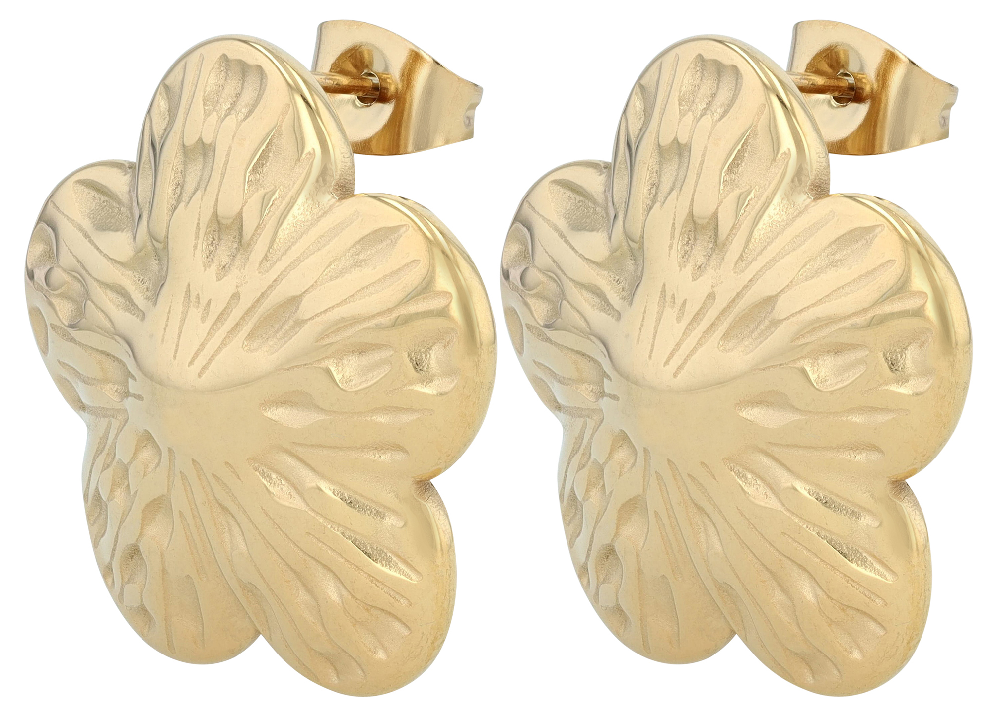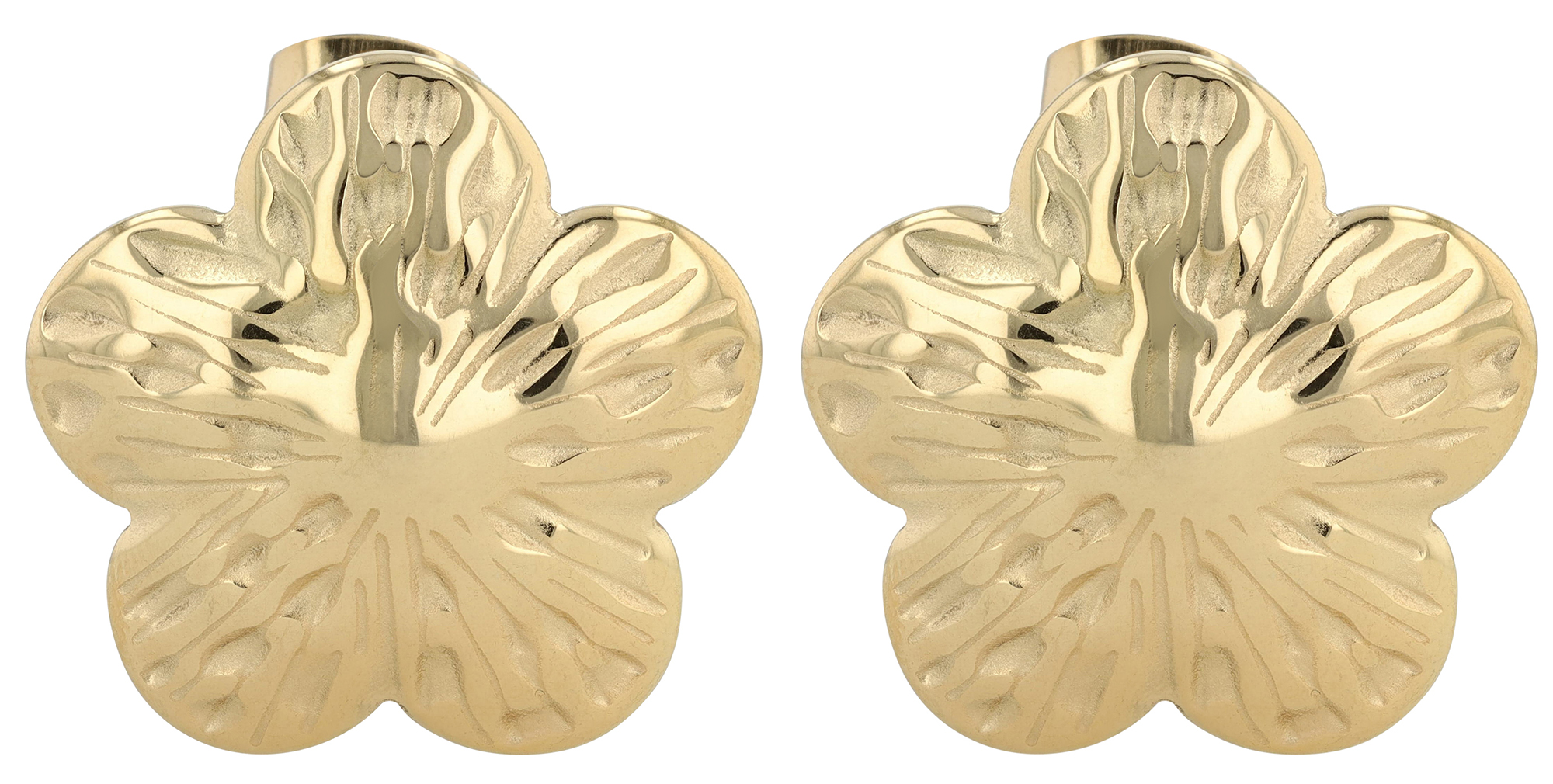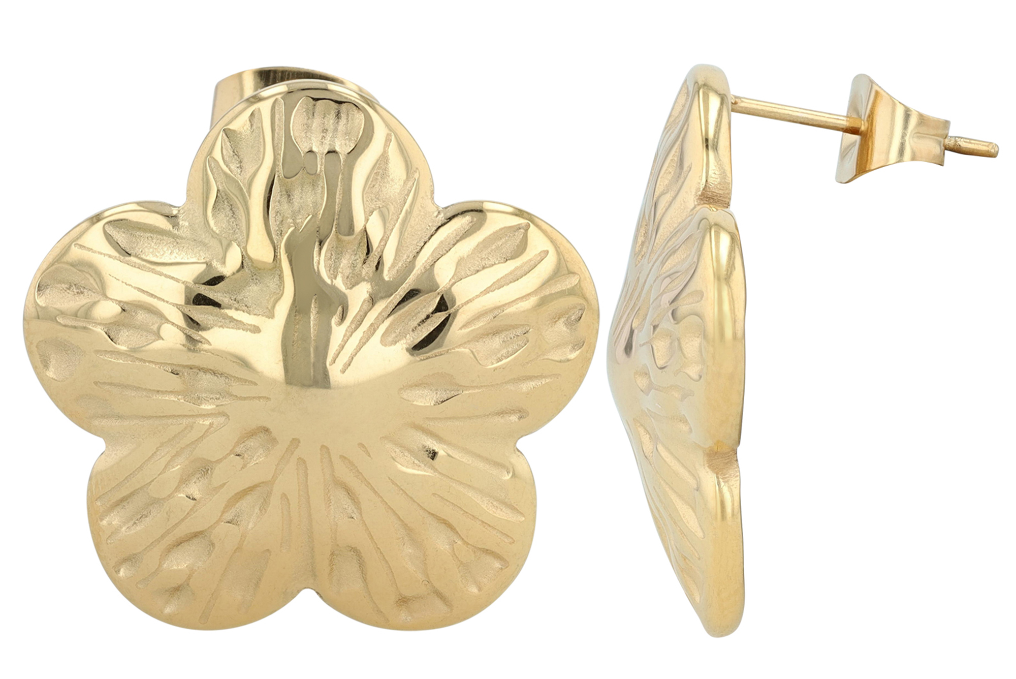 Productinformatie ""Alja" roestvrijstalen oorstekers, bloem, goudkleurig"