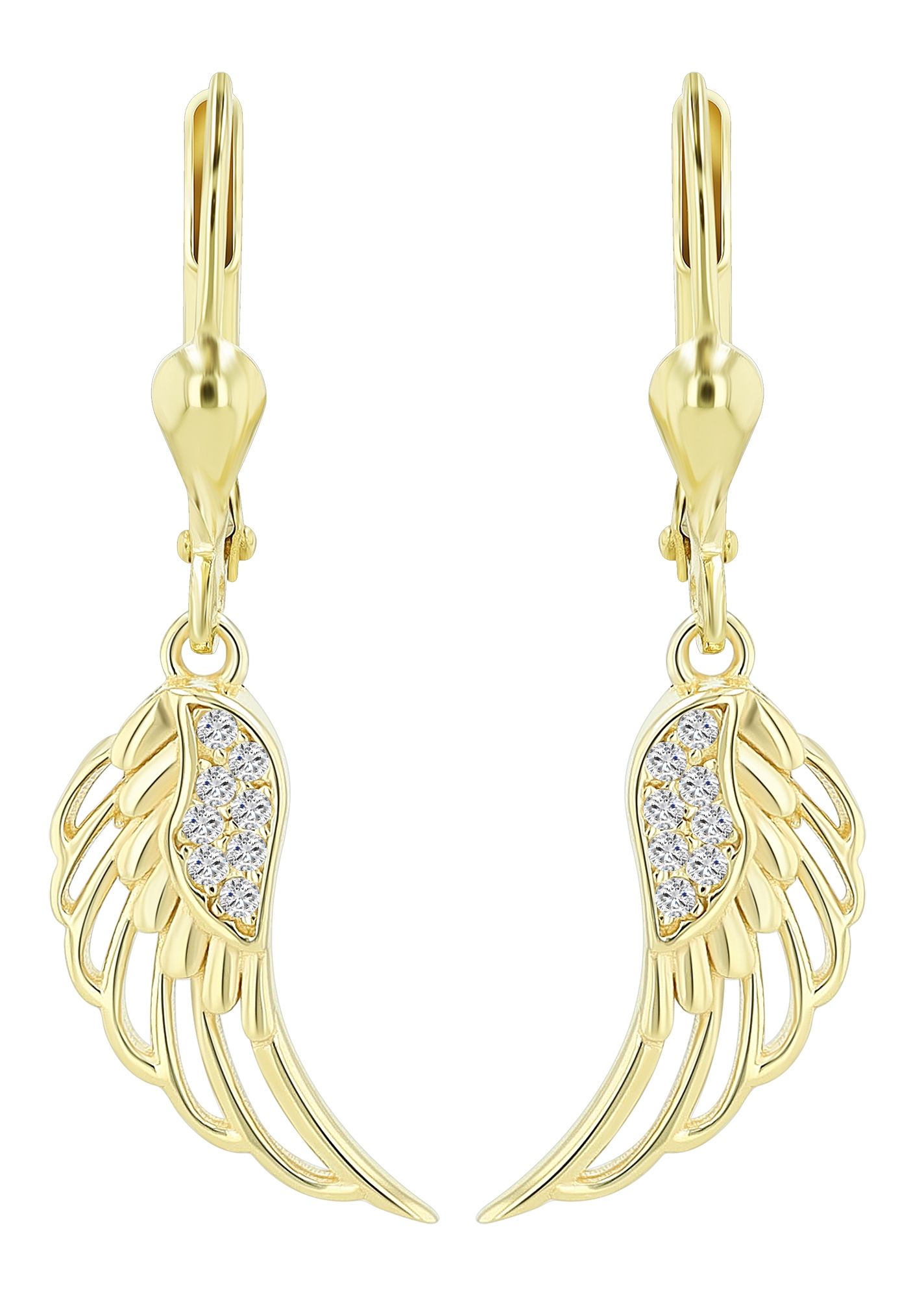 Productinformatie ""Allanah" 925/- Echt Silber Ohranhänger, Flügel, Zirkoniabesatz, vergoldet"