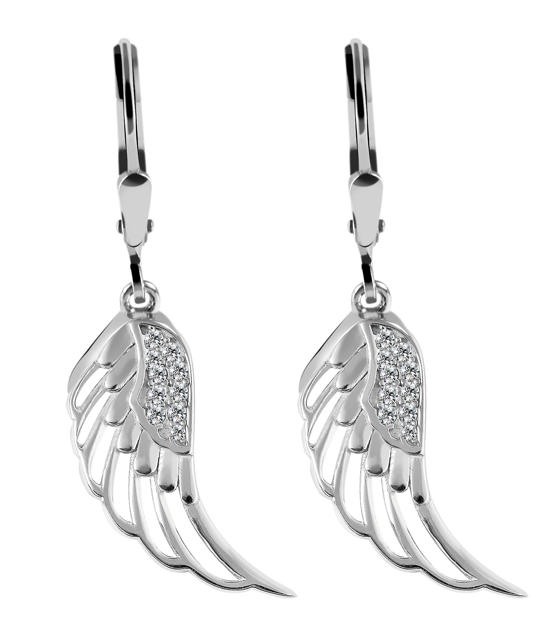 Productinformatie ""Allanah" 925/- echt zilveren oorhanger, vleugels, zirkonia zetting, gerhodineerd"