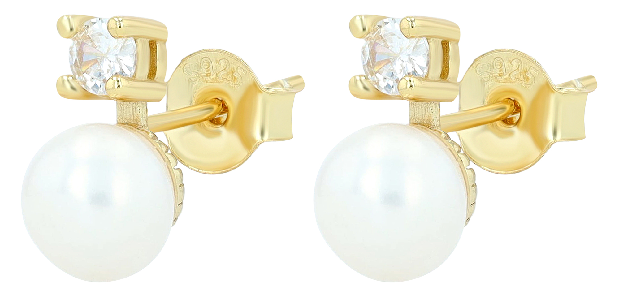 Productinformatie ""Alma" 925/- echt zilveren oorbellen, echte zoetwaterparel zirkonia, verguld"
