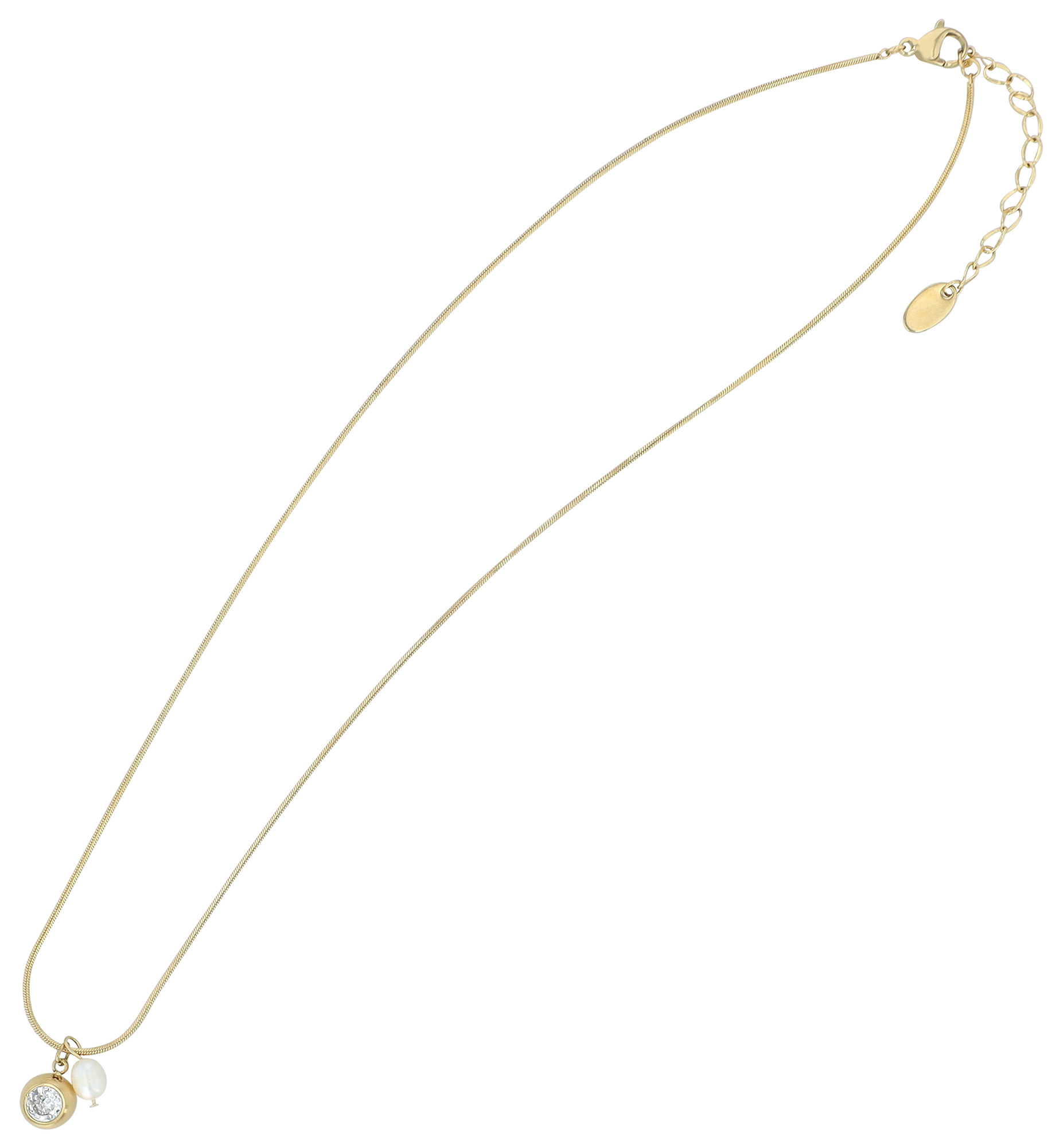 Productinformatie ""Alyssa" roestvrijstalen halsketting met hanger en zoetwaterparel 41 + 5 cm"