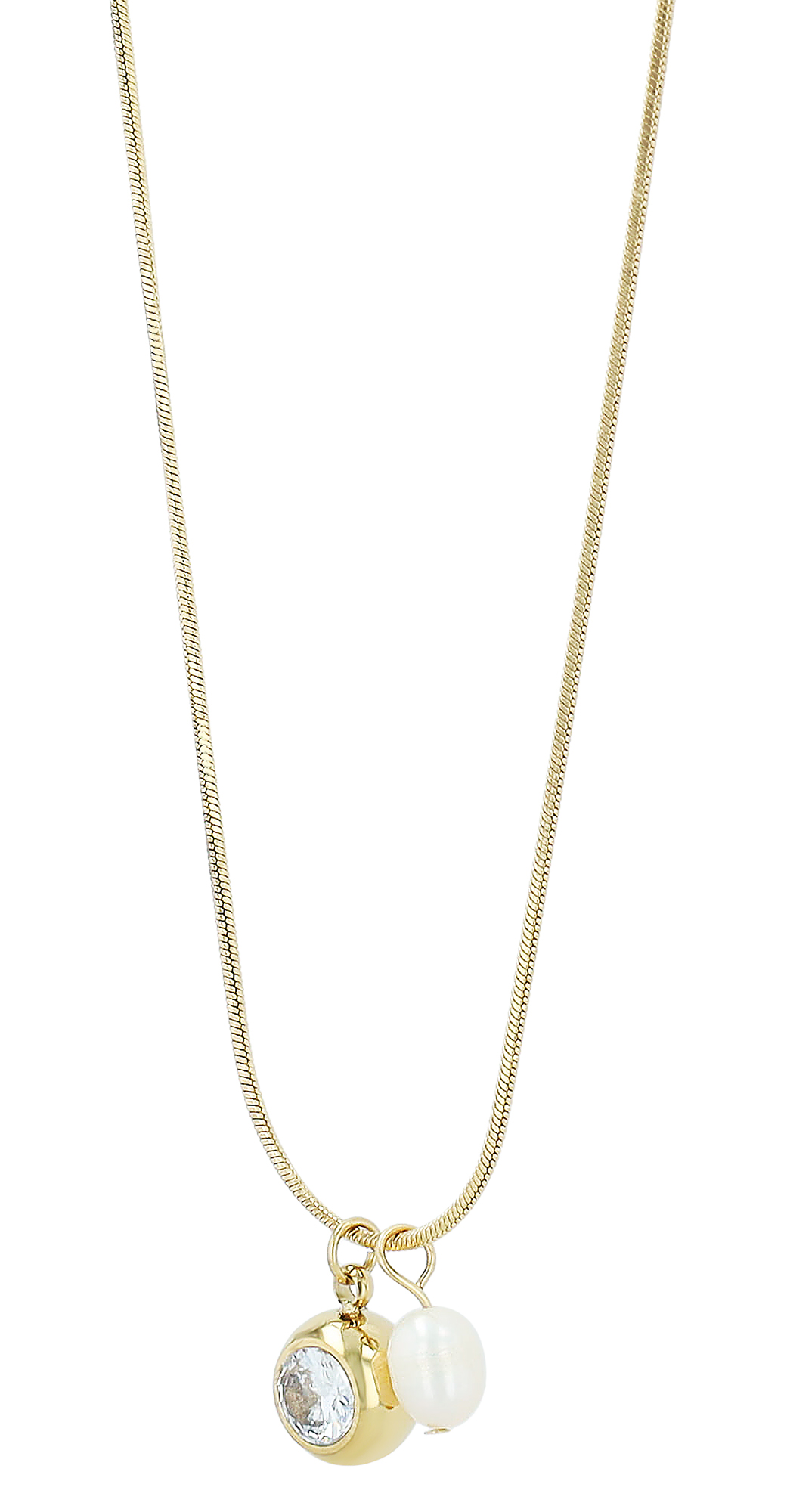 Onze halsketting met twee hangers is gemaakt van hoogwaardig roestvrij staal en staat niet alleen voor tijdloze elegantie, maar ook voor duurzaamheid. Roestvrij staal is bestand tegen corrosie en aanslag, waardoor de ketting zijn stralende schoonheid zelfs na langdurig dragen behoudt. De ketting heeft een lengte van 41 cm, met een extra verlengketting van 5 cm voor maatwerk. De veilige karabijnsluiting zorgt niet alleen voor een stevige greep, maar ook voor eenvoudige bediening. Het middelpunt van dit betoverende collier is de hanger met een similietsteen (Ø 8 mm), met een extra ornament aan de achterkant en een tweede kleine hanger met een delicate zoetwaterparel. De sprankelende hangers stralen een natuurlijke schoonheid uit en geven het collier een zachte elegantie.