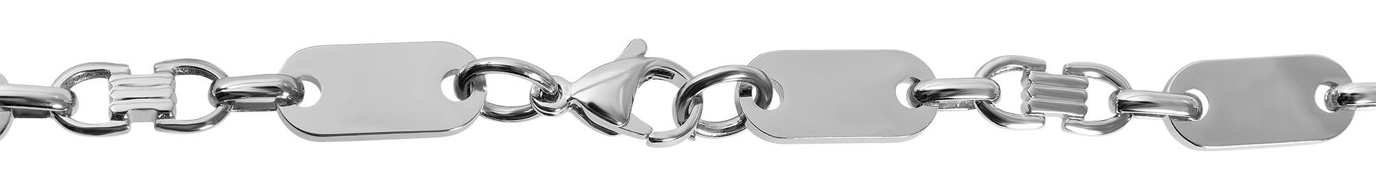 De plaatjes van 18 x 8 mm bieden genoeg ruimte voor een persoonlijke gravure zoals een datum, een naam of een klein motief - je kunt hier creatief te werk gaan. De graveerplaatjes worden afgewisseld met de getextureerde elementen om de ketting een indrukwekkende look te geven.
