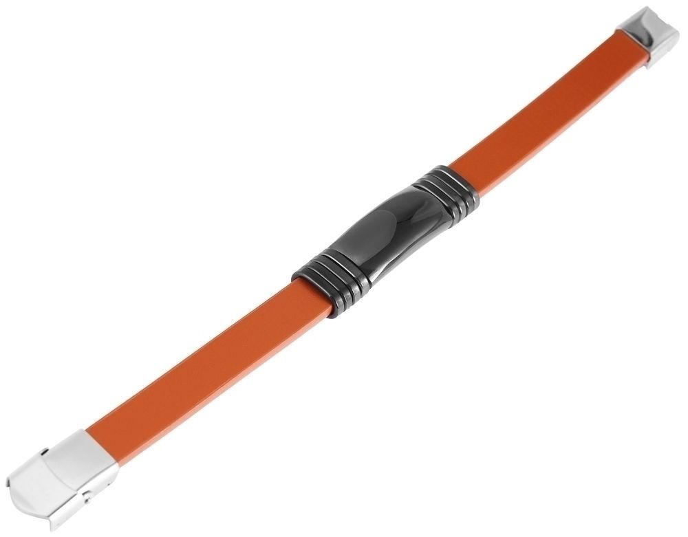 De bruine echt lederen armband van het merk Akzent bestaat uit een 10 mm brede, gladde lederen band. In het midden is een 2,9 cm lang element van zwart roestvrij staal verwerkt. Dit wordt omringd door vier ovale roestvrijstalen ringen in dezelfde kleur. Deze ronden het harmonieuze totaalbeeld van de modieuze sieradenarmband af. De armband kan worden geopend en gesloten met een glanzende zilverkleurige haaksluiting. De totale lengte van het sieraad is 21 cm, de breedte van het graveerplaatje is 13 mm en de materiaaldikte is 8 mm.