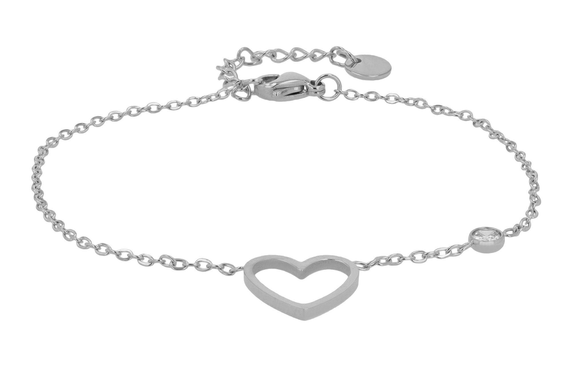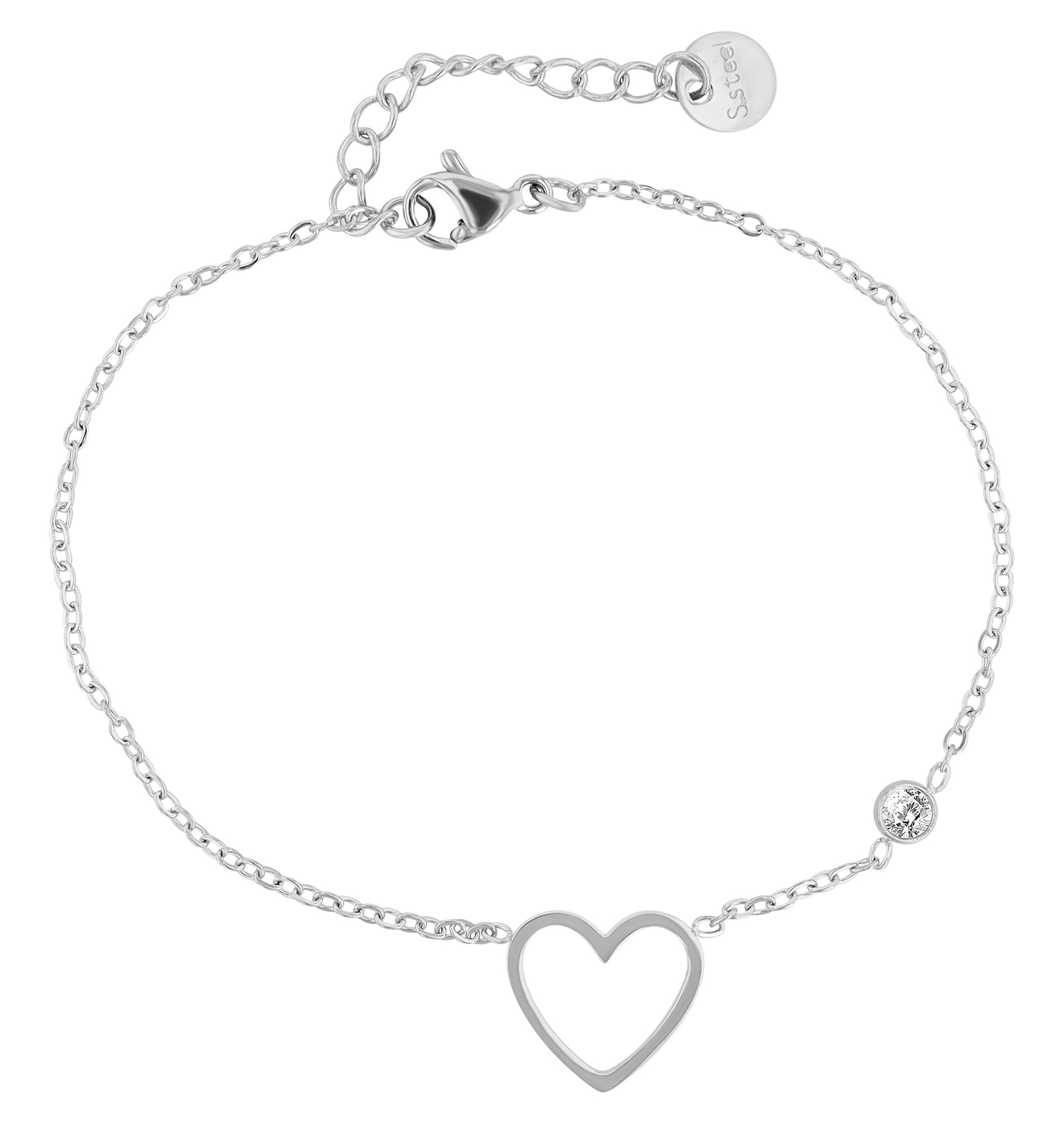 Productinformatie ""Anjul" accent armband, hart hanger en zirkonia, roestvrij staal, 17 + 3 cm, zilverkleurig"