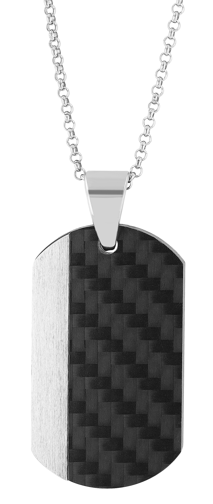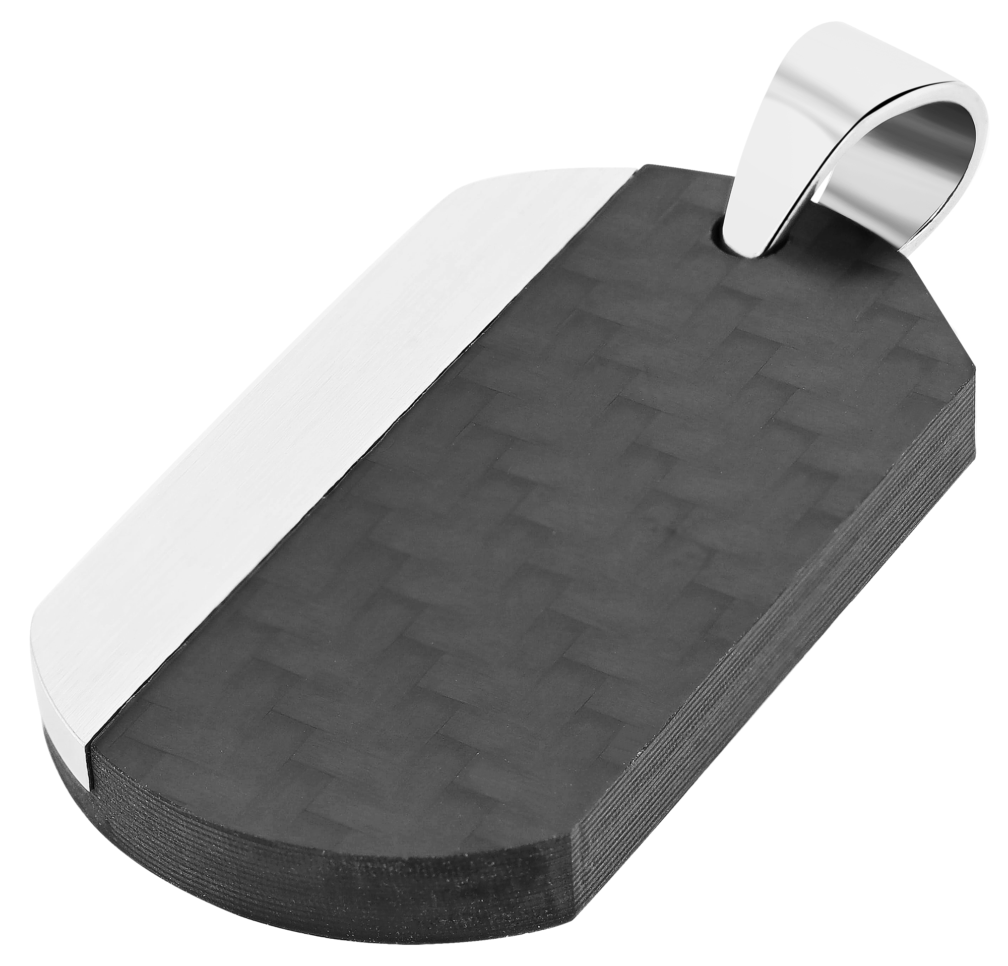 Modieuze dog tag hanger met carbon patroon voor de moderne gentleman van vandaag.