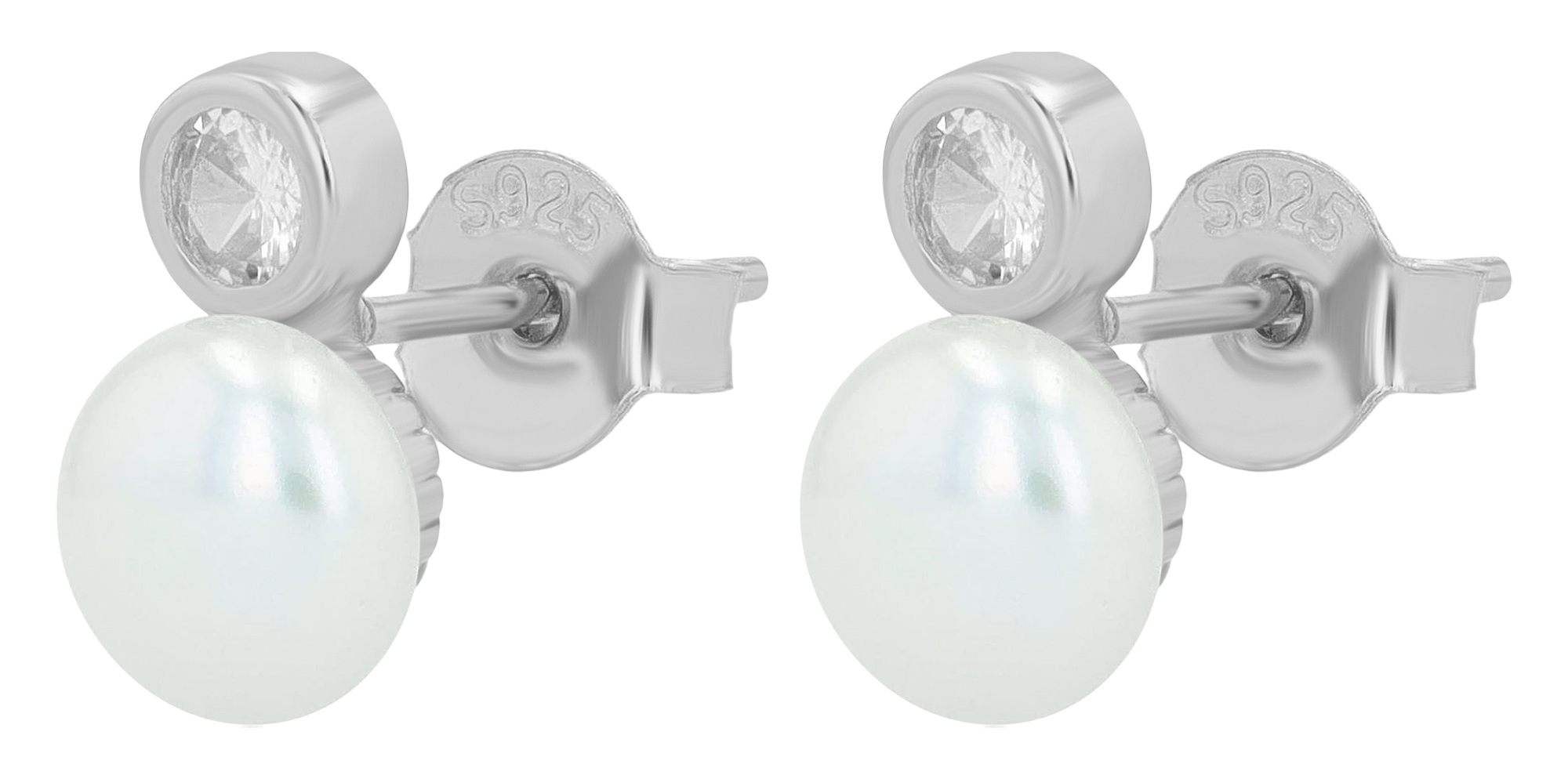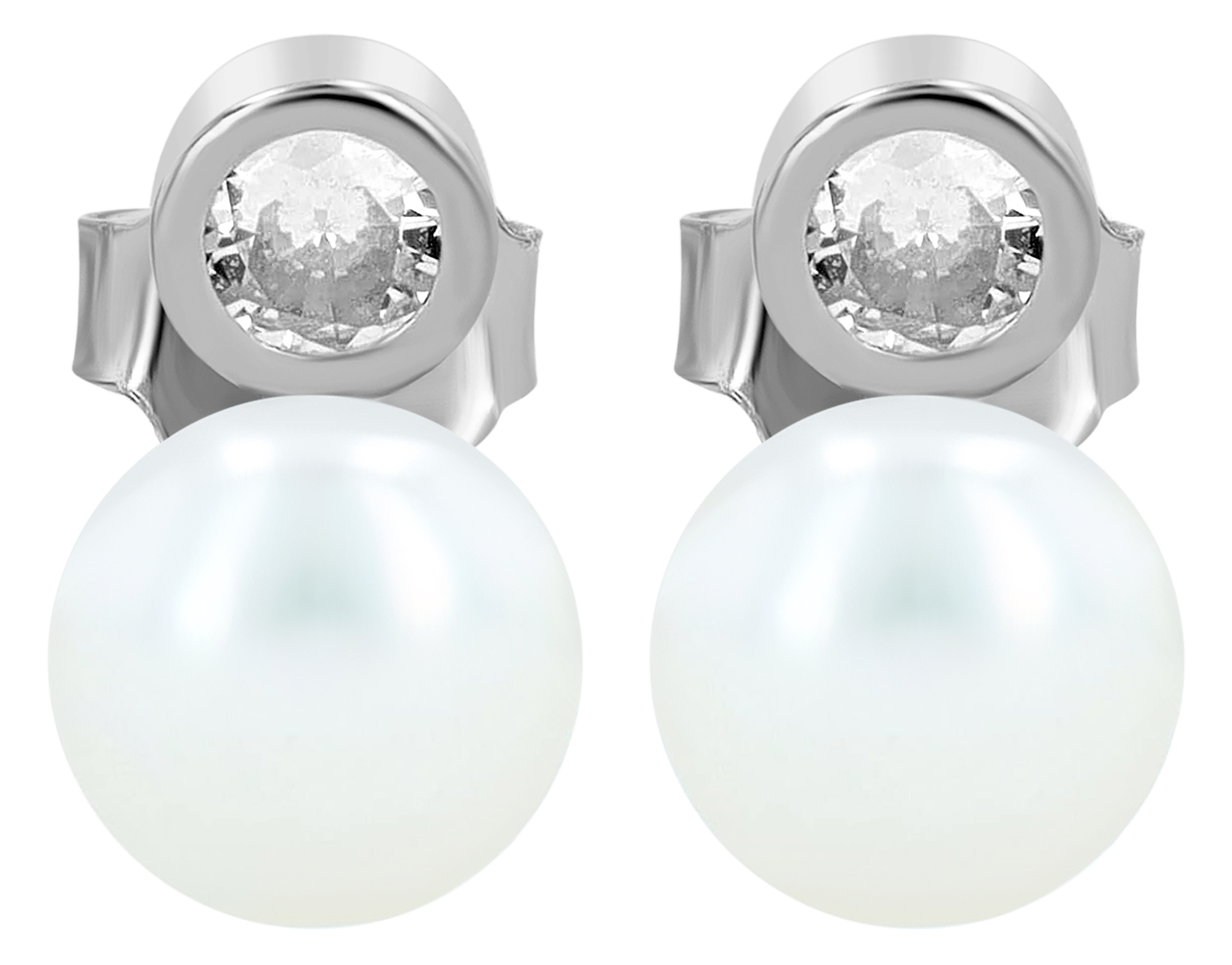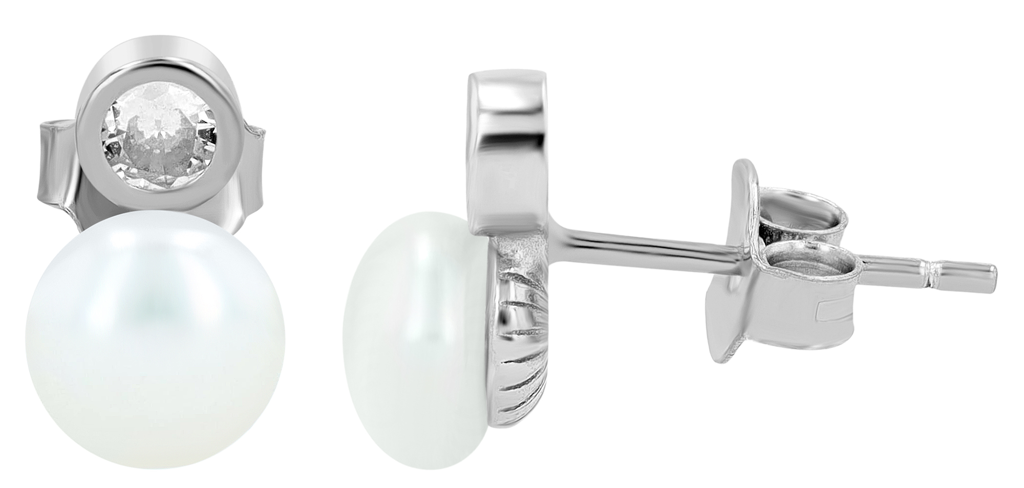 Productinformatie ""Arbi" 925/- Echt Silber Ohrstecker, echte Süßwasserperle Ø 6 mm, Zirkonia, rhodiniert"
