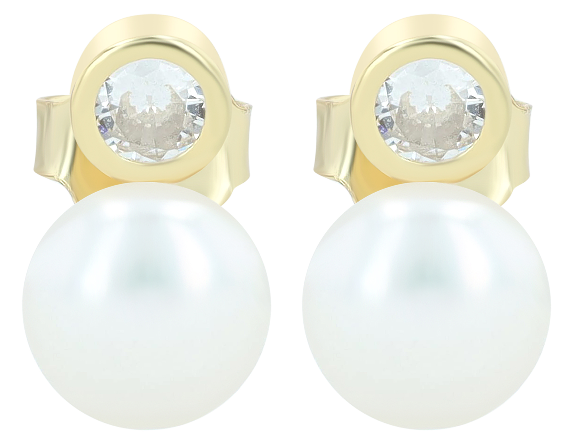 Productinformatie ""Arbi" 925/- echt zilveren oorbellen, echte zoetwaterparel Ø 6 mm, zirkonia, verguld"