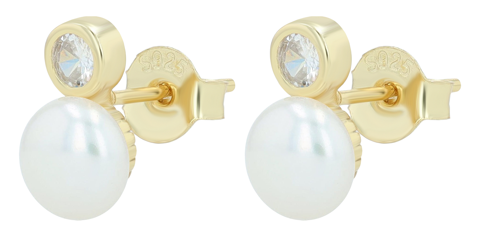 De oogverblindende stud oorbellen van 925 sterling zilver met een totale hoogte van 10 mm zijn bezet met een echte zoetwaterparel, diameter 6 mm, en een fonkelende cubic zirconia steen in een prong zetting. Verkrijgbaar in 2 kleurvarianten - klassiek zilverkleurig of warm verguld - is dit accessoire een must-have voor liefhebbers van tijdloze elegantie en moderne verfijning. De push-in sluiting biedt een hoog en veilig draagcomfort, terwijl de rhodium plating de glans van het sieraad behoudt. Perfect als bijzonder cadeau voor elke gelegenheid.