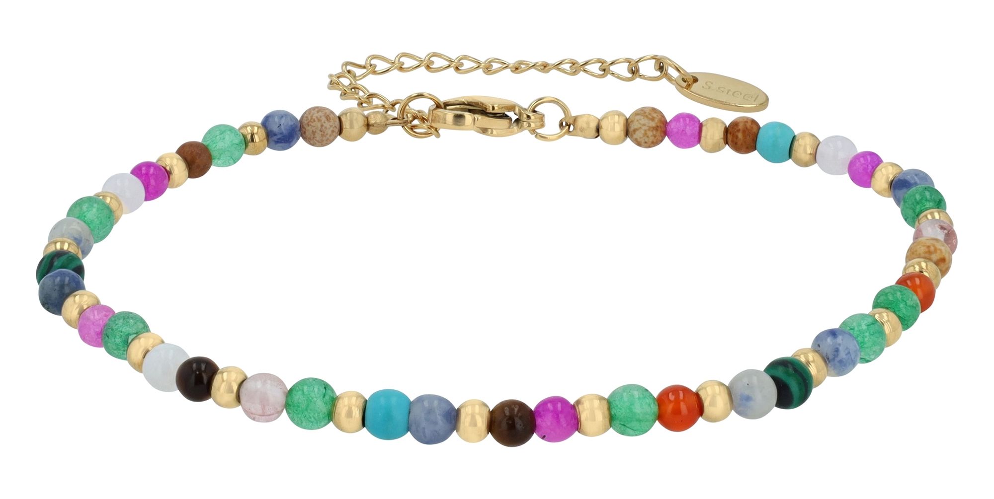 Productinformatie ""Ariane" armband met gekleurde nepparels & roestvrij staal"