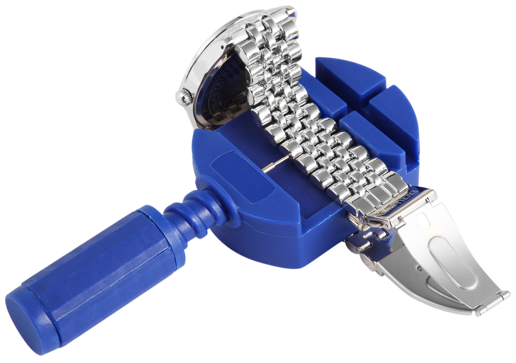 Met de praktische kunststof bandverkorter kunnen horlogebandjes eenvoudig en voorzichtig worden ingekort. De schakelarmband van het horloge wordt in het midden van de voor de armband voorziene uitsparing, het steunvlak, geplaatst en de snijder wordt dan via een draad met de pen uitgelijnd en uit de armband gedrukt. Het maakt niet uit of de armband gemaakt is van metaal, roestvrij staal, hout, keramiek of kunststof, omdat de kunststof van de armbandverkorter zacht genoeg is om het verkortingsproces zacht te maken voor het materiaal. Het is mogelijk om armbanden in te korten tot een breedte van 28 mm. Het opberghoekje is aan de buitenkant bevestigd met een schroef en kan worden verwijderd door de schroef los te draaien. De punt van de pons heeft een diameter van 1 mm. De armbandverkorter is 11,3 cm lang, 4,8 cm breed en 2,8 mm hoog.