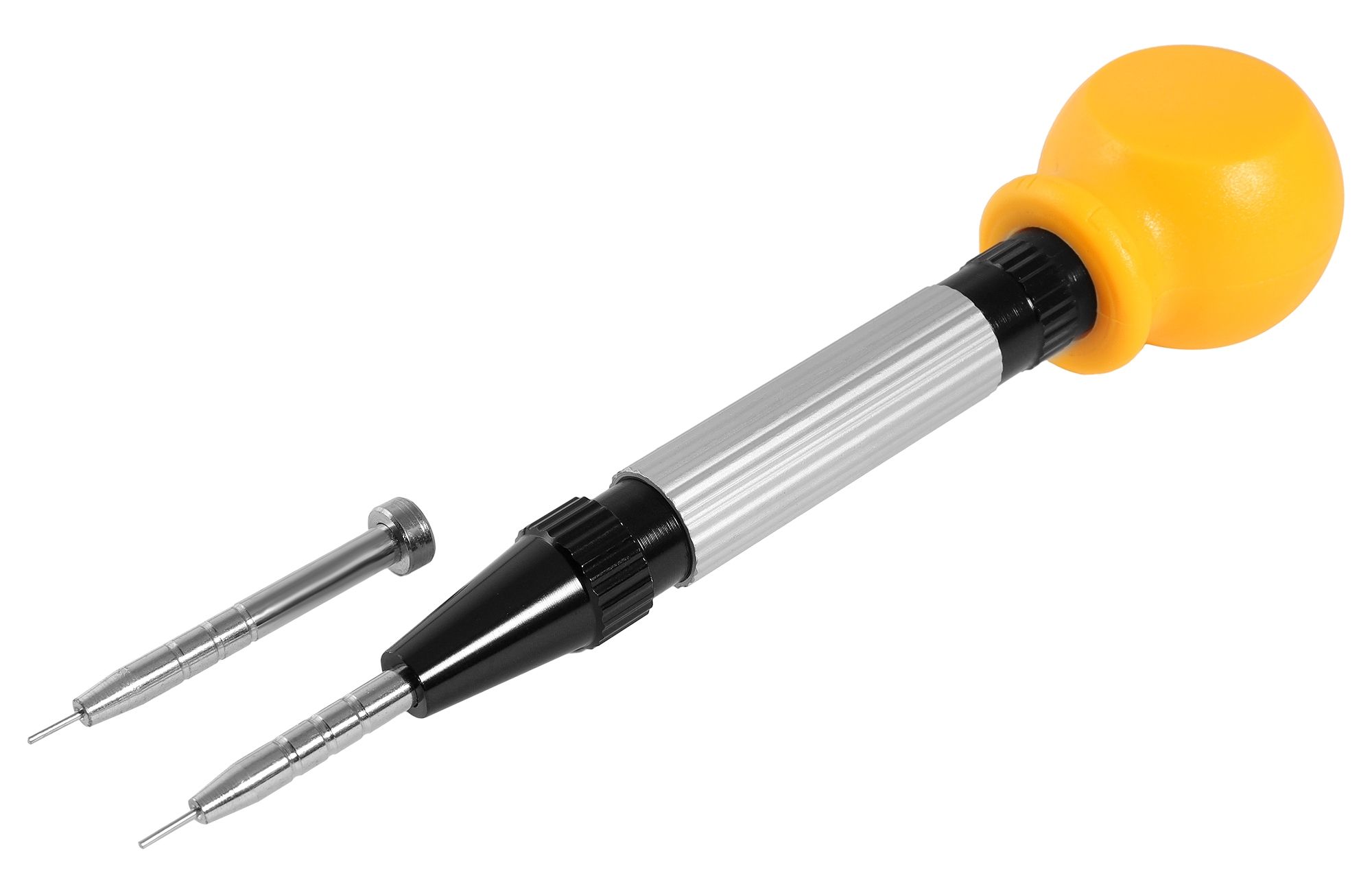 Een belangrijk gereedschap in je werkplaats of winkel. Met dit hoogwaardige gereedschap kun je snel en precies horlogebandjes inkorten zonder het horloge of het bandje te beschadigen. Op de kop van de bandverkorter/pen zit een kunststof balletje zodat het gereedschap stevig in de hand ligt.