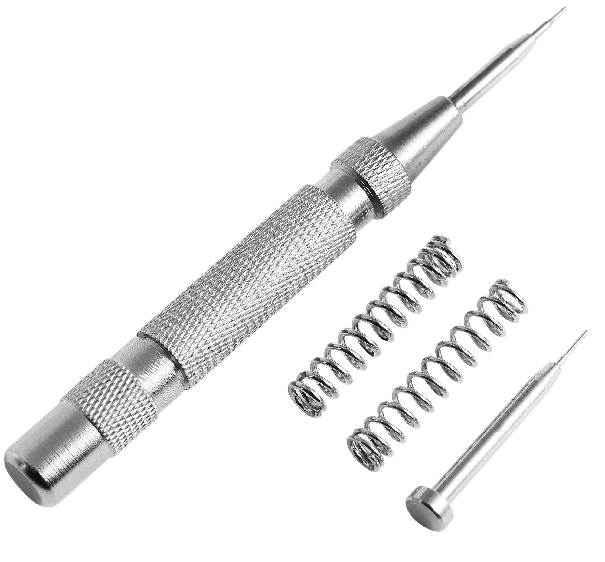 De solide metalen armbandverkorter wordt geleverd met twee vervangingsveren en een vervangingspunt. De afmetingen van het gereedschap zijn: 12,9 cm x 1,3 cm.