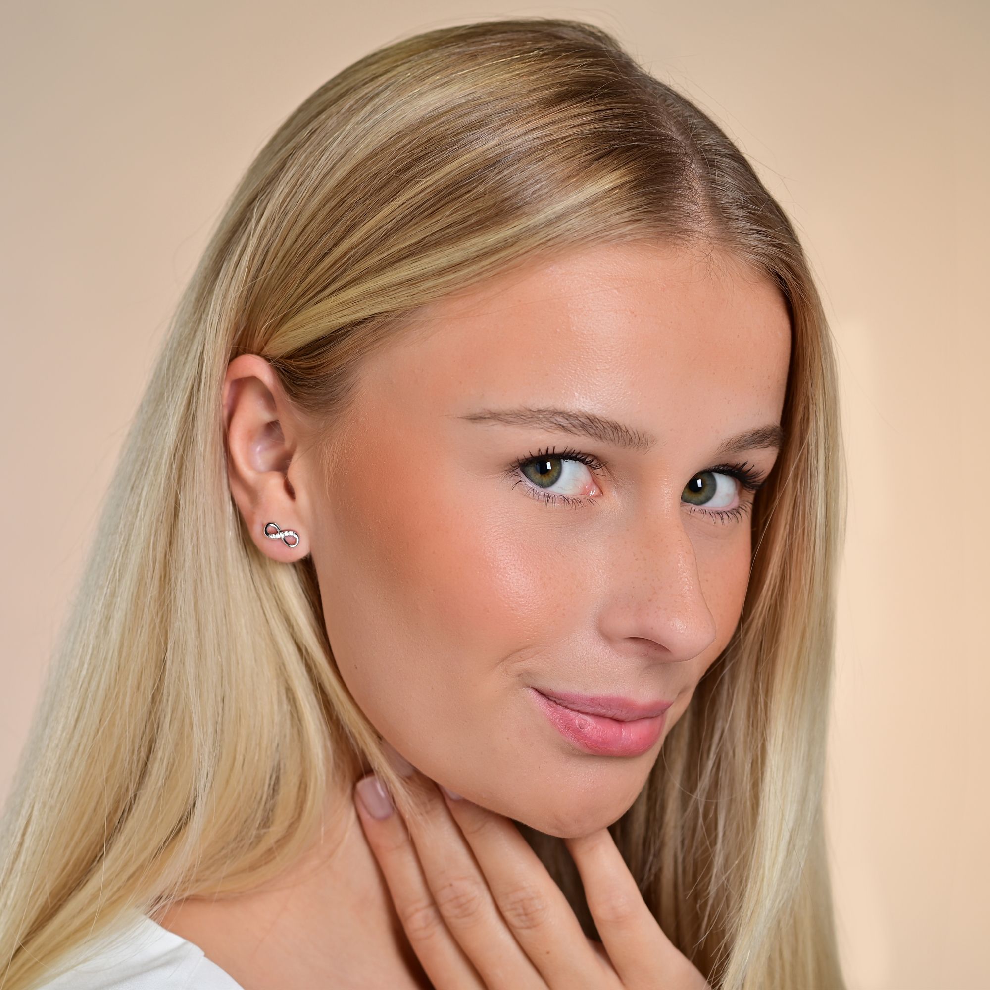 Maak een delicaat maar betekenisvol statement met onze betoverende infinity stud oorbellen. Deze tijdloze sieraden belichamen eeuwige verbondenheid en oneindige liefde.