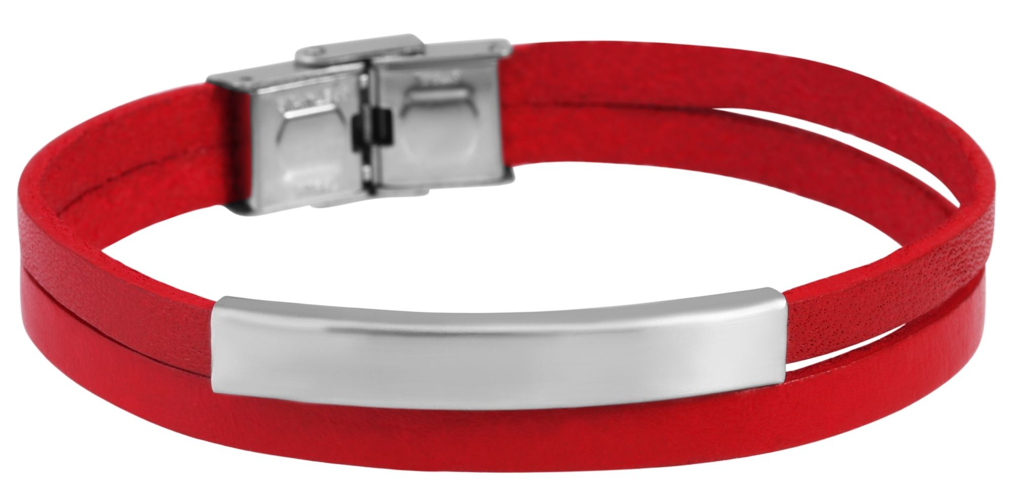 Productinformatie ""Aron" Echtlederarmband mit Gravurplatte, 21 cm, rot"