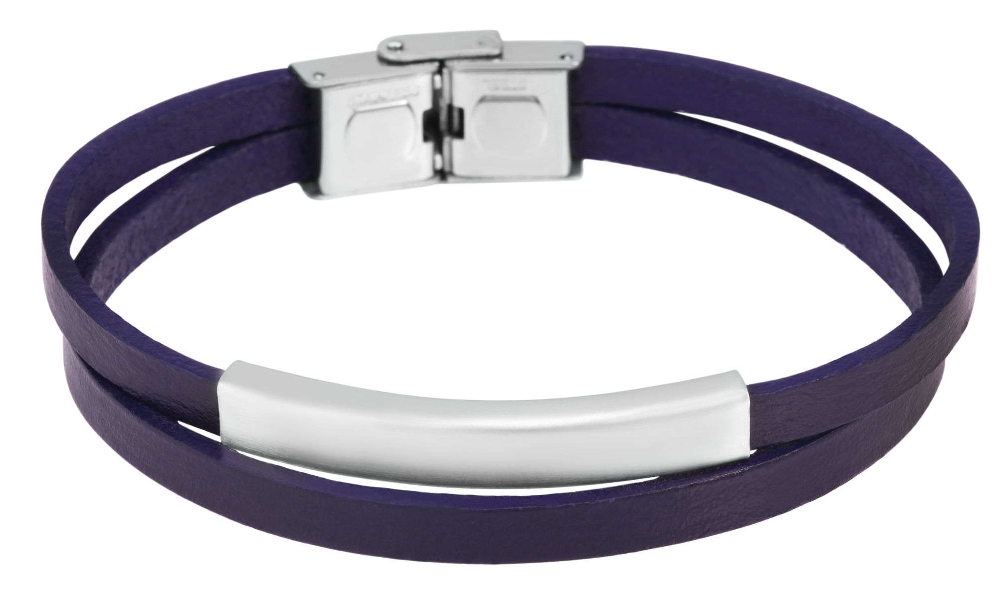 Productinformatie ""Aron" echt lederen armband met graveerplaatje, 21 cm, blauw"