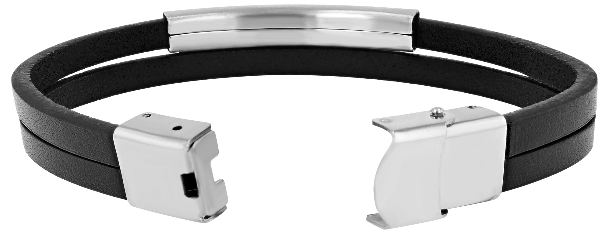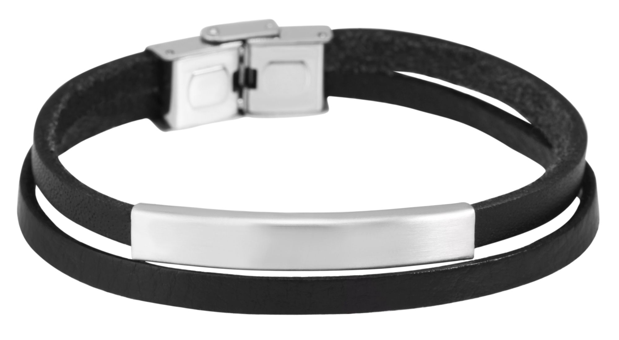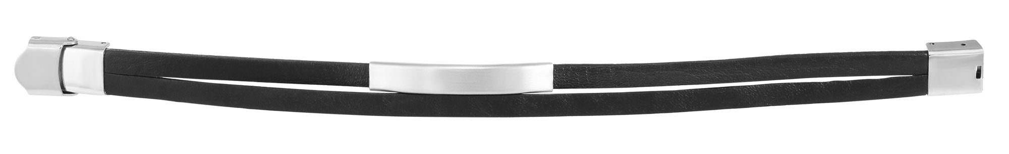 Deze moderne unisex armband van het merk Akzent combineert stijl met een persoonlijk tintje. Hij bestaat uit twee platte, donkerbruine banden van echt leer.