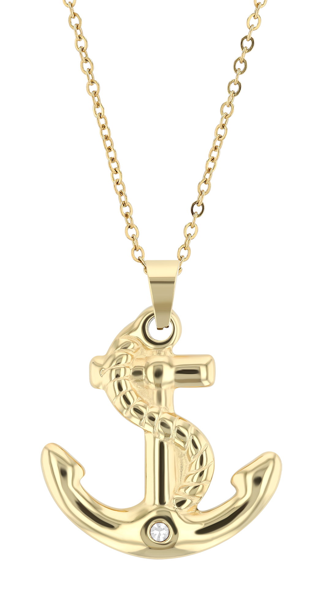 Stevige hanger in een ankerontwerp met een 3D-look, gemaakt van stevig roestvrij staal.