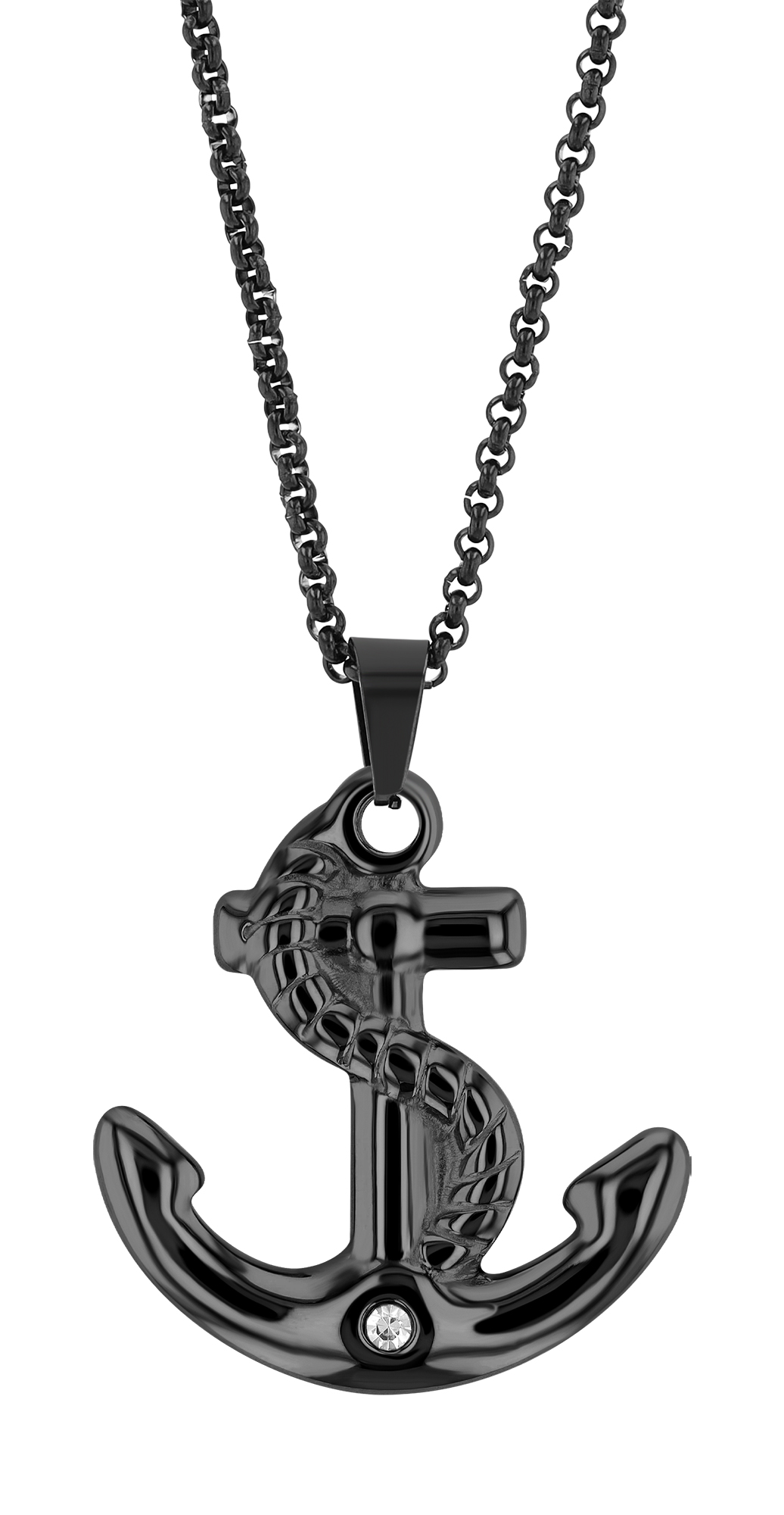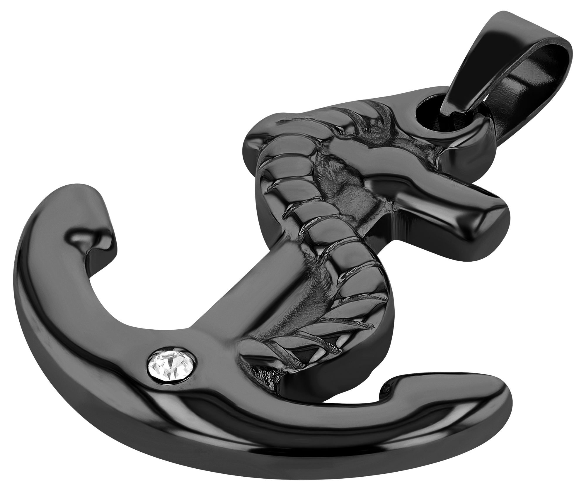 Productinformatie ""Asta", Edelstahlanhänger, Anker, Similibesatz, schwarz"