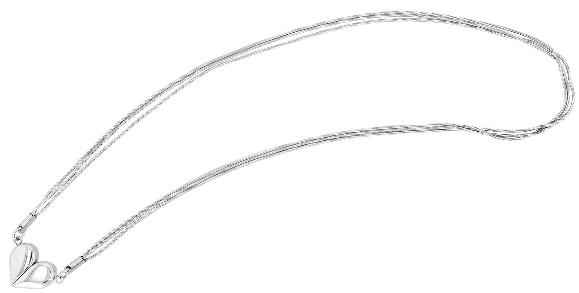 Productinformatie ""Atesh" 3-rijige roestvrijstalen ketting met hanger, hart, 43cm, zilverkleurig"