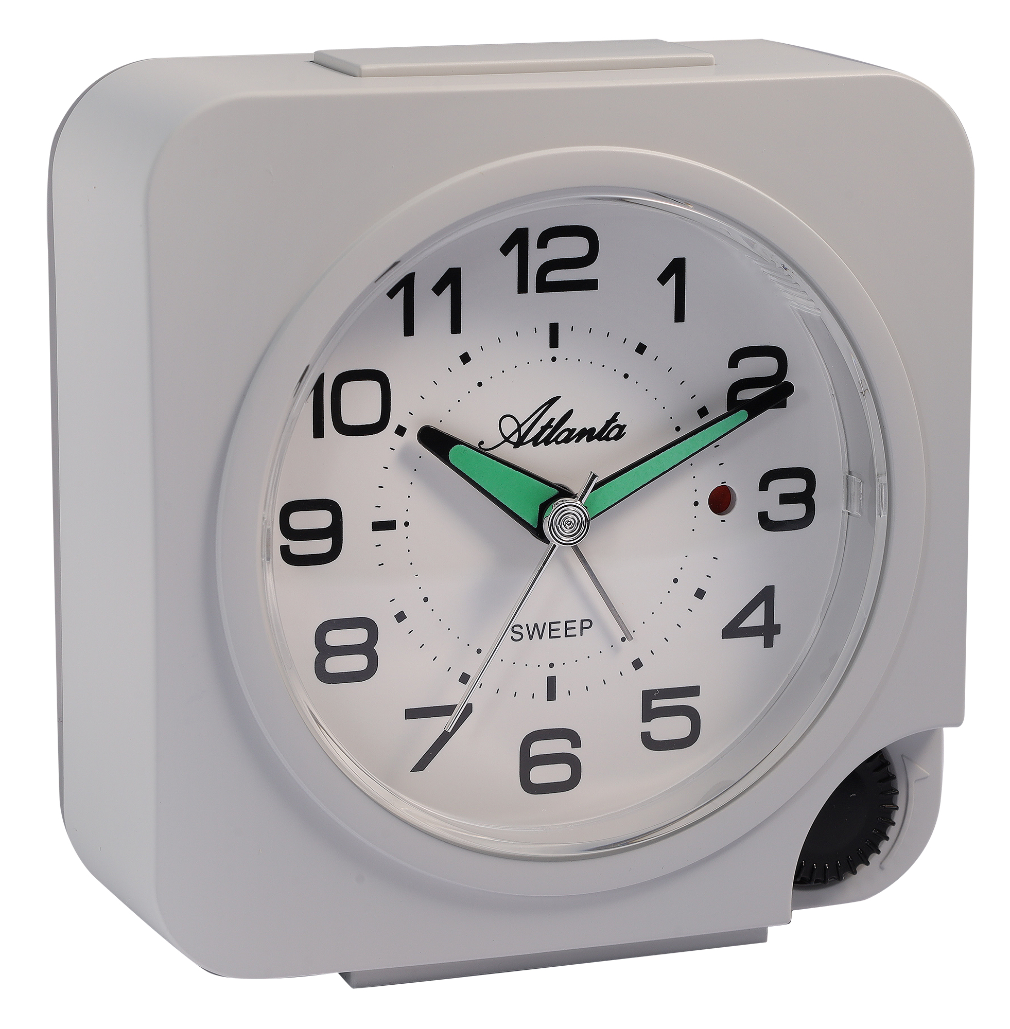 Atlanta kwarts wekker (stil/ licht/ snooze), grijs De robuuste kunststof behuizing in drie subtiele kleurencombinaties maakt het een stijlvol accessoire op je nachtkastje en garandeert tegelijkertijd langdurige geschiktheid voor dagelijks gebruik. Dankzij de kruipende secondewijzer werkt het hoogwaardige kwartsuurwerk bijna geruisloos, zodat je kunt genieten van een volledig ongestoorde nachtrust.