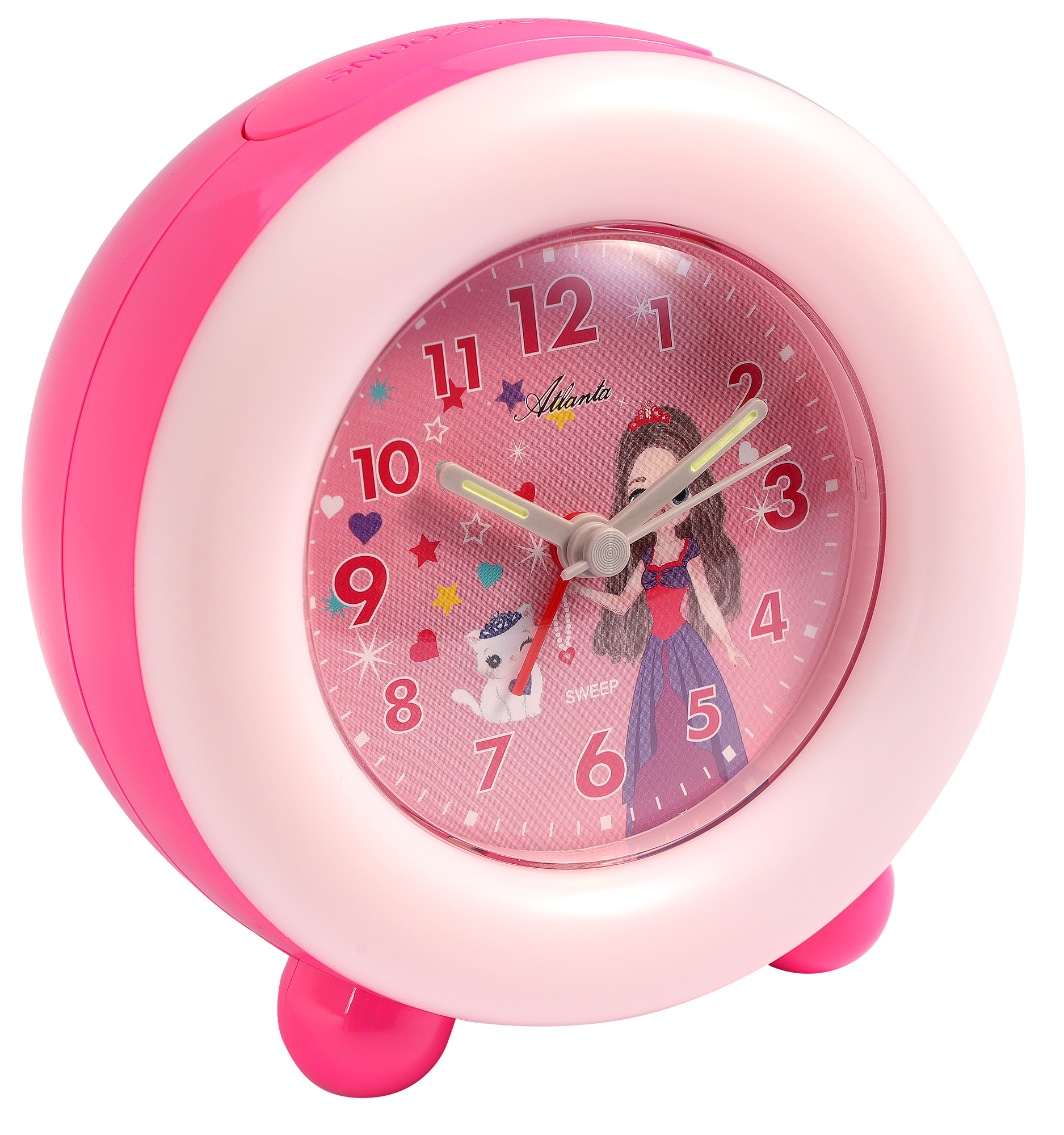 Productinformatie "Atlanta Quarz-Wecker für Kinder (Leisegang/ Licht/ Snooze), pink/ Prinzessin"