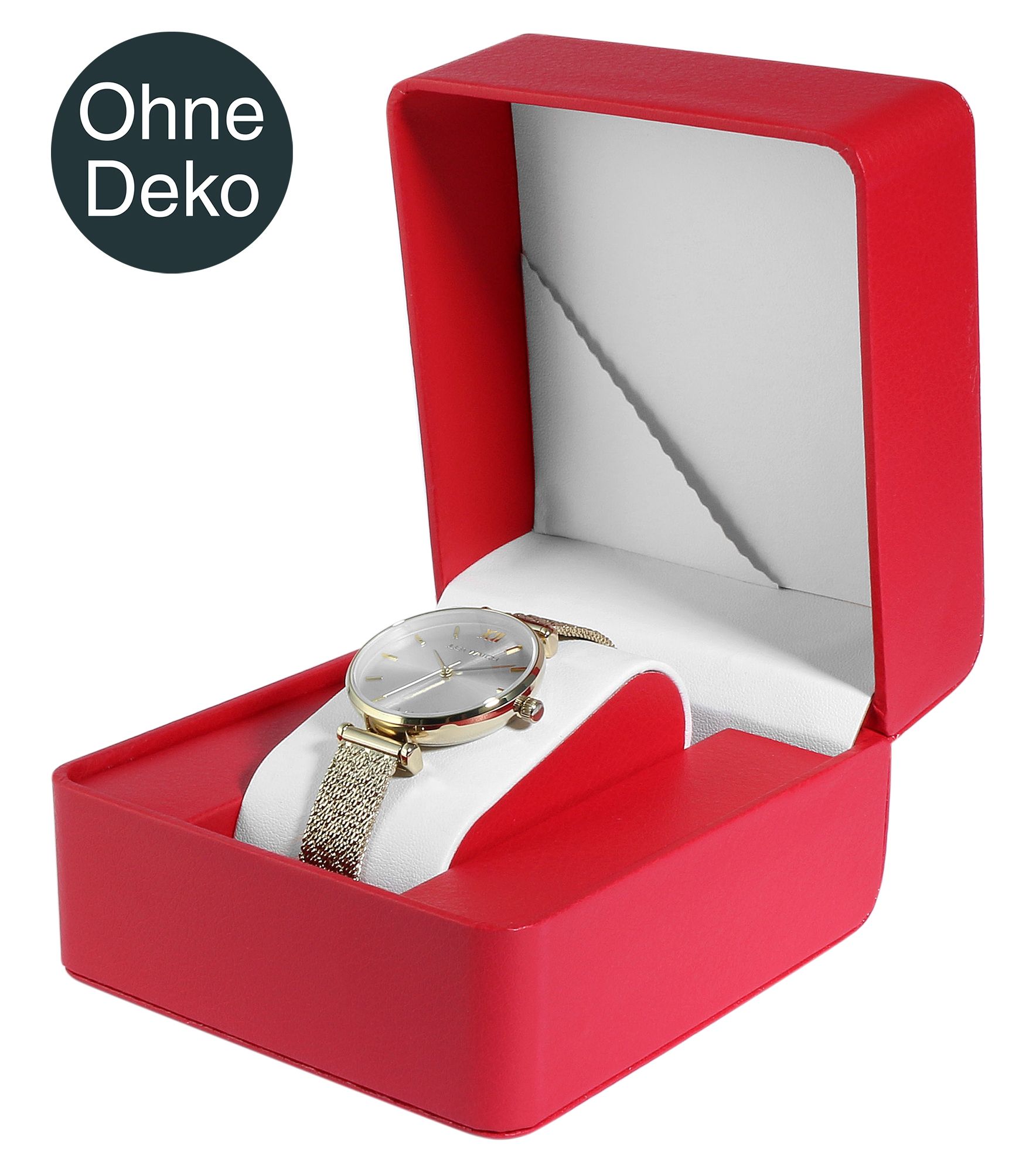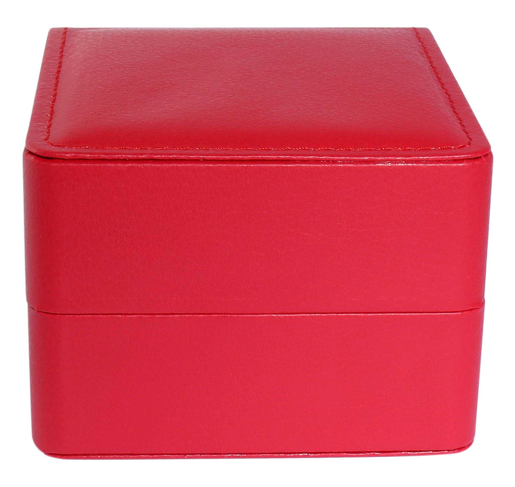 Productinformatie "Aufklappbare Uhrenbox mit Kissen, Lederimitat, 11 x 10 x 7 cm, rot"