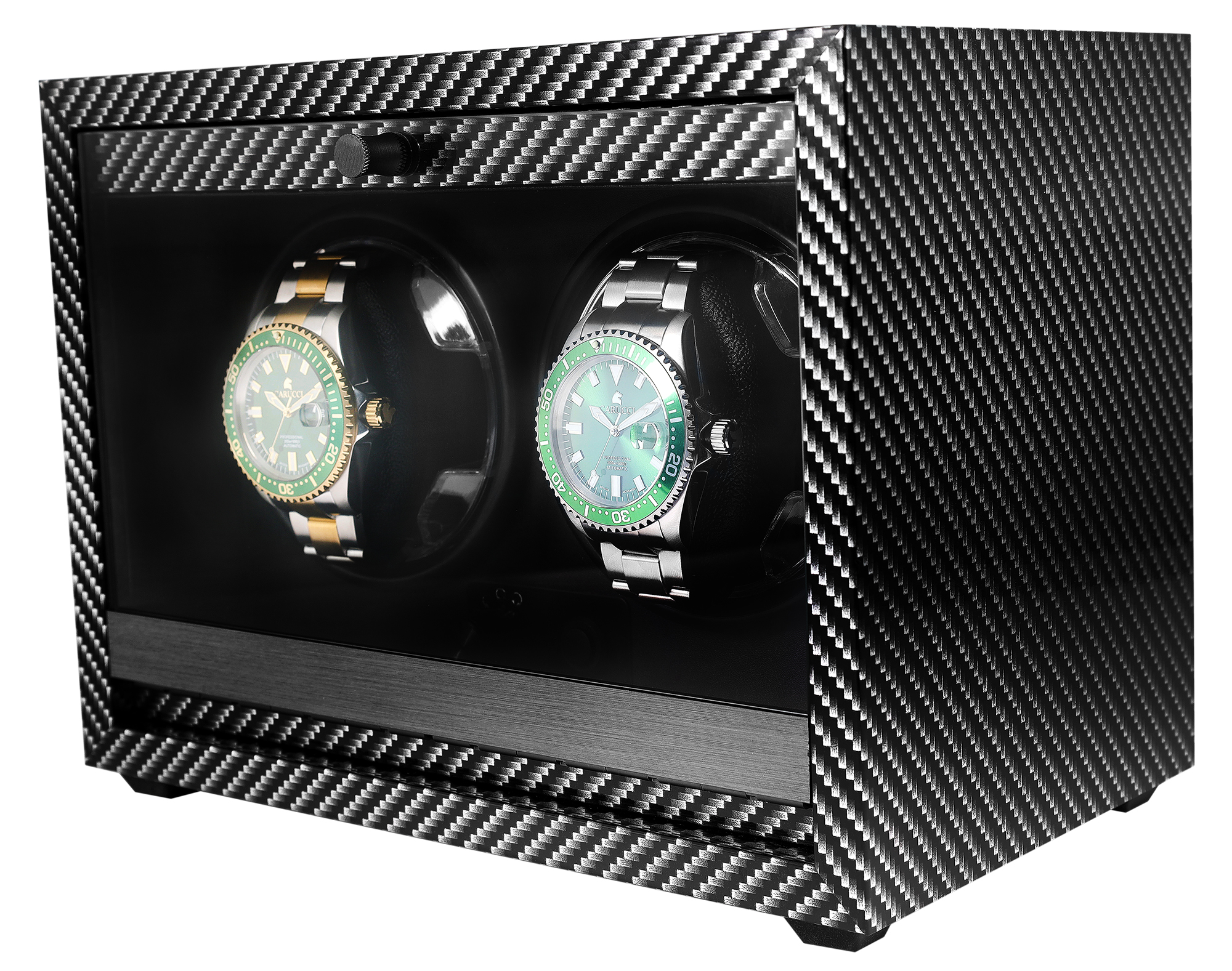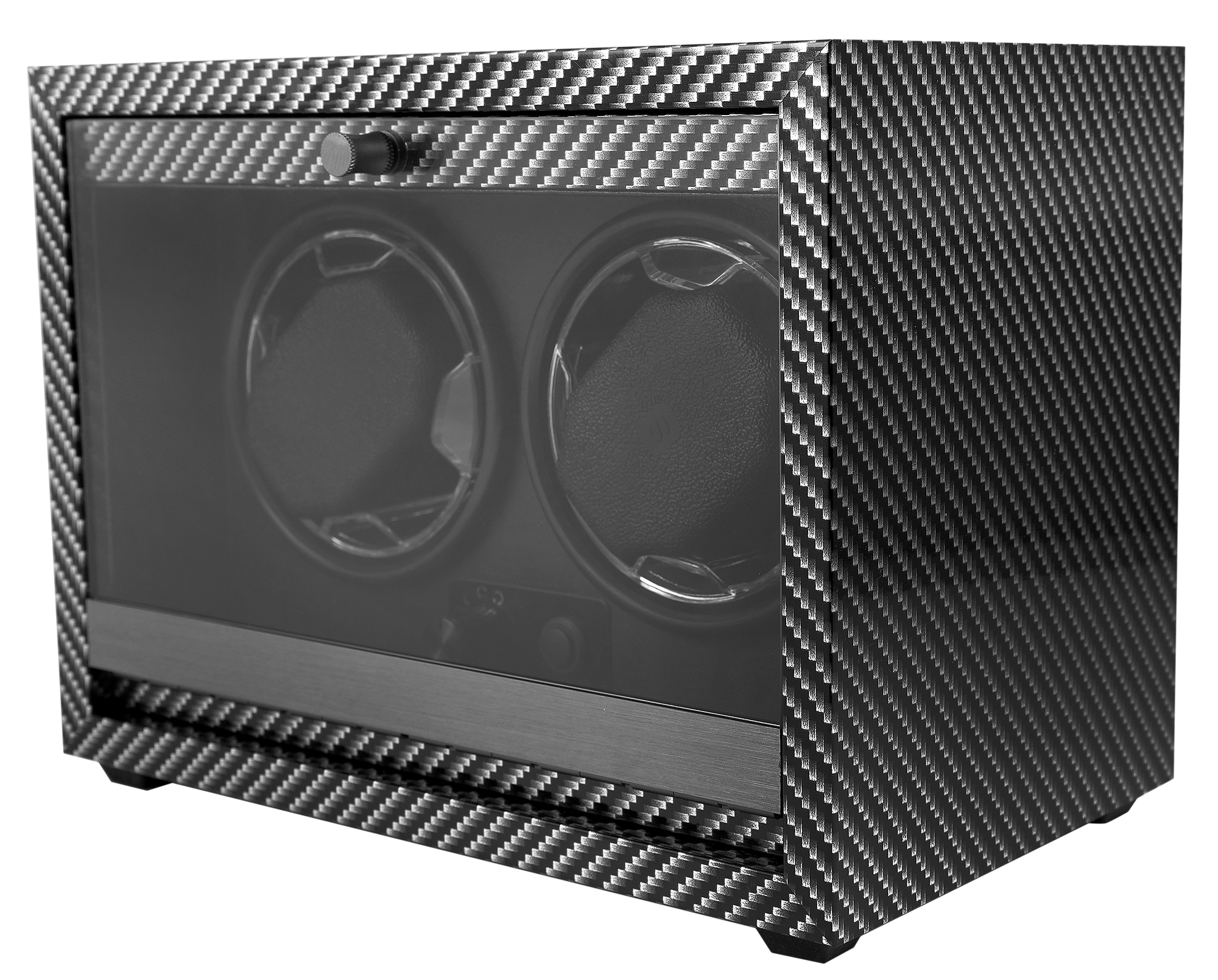 Productinformatie "Automatische horlogeopwinder voor 2 horloges, licht, USB-DC, koolstofvezel"