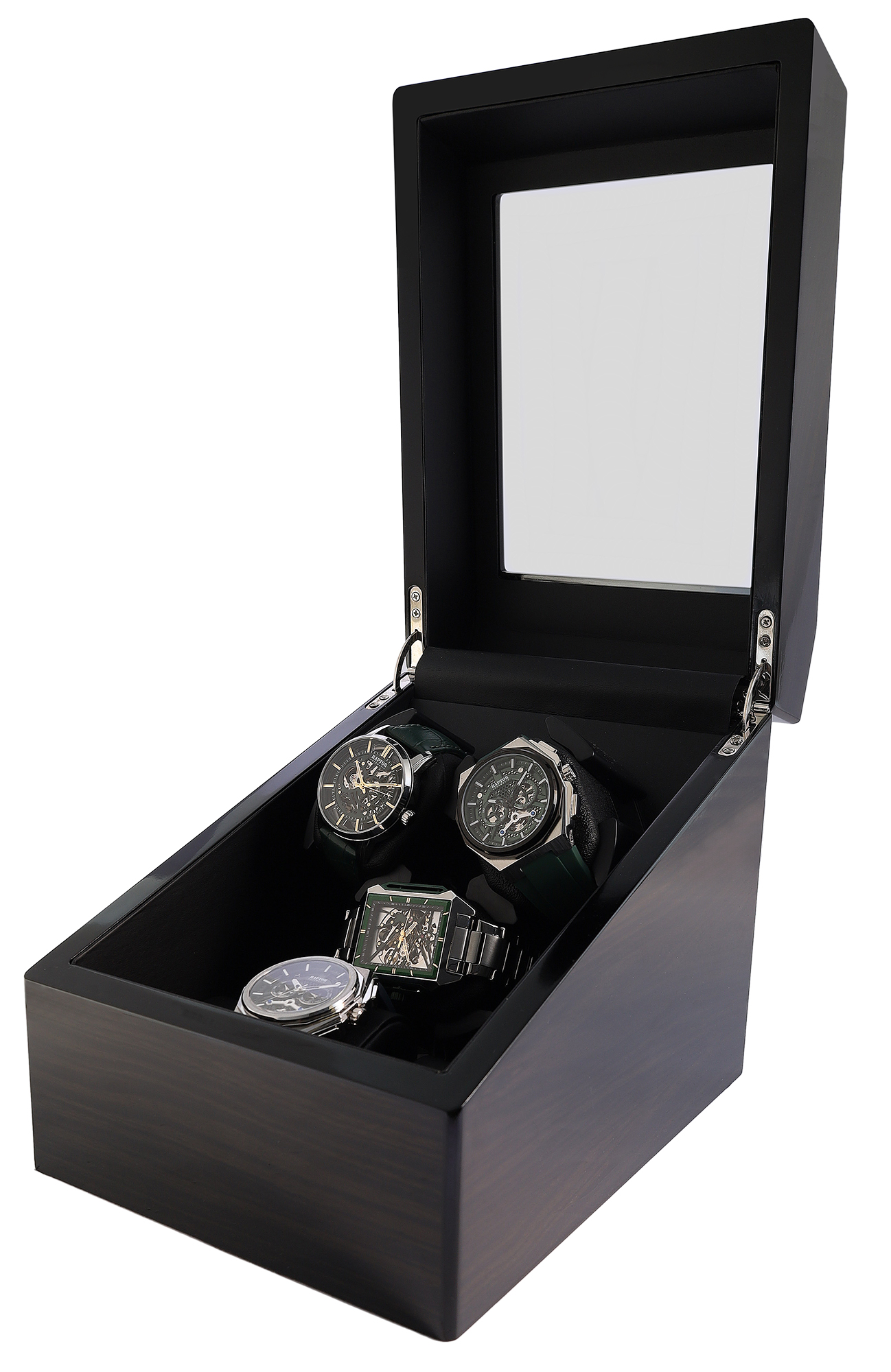 Deze ruime horlogeopwinder is de perfecte oplossing voor verzamelaars. Hij combineert professionele opwindtechnologie voor drie automatische horloges met extra opbergruimte voor nog eens drie uurwerken. De hoogwaardige kast met houtlook maakt het een stijlvolle blikvanger op elke plank of dressoir.