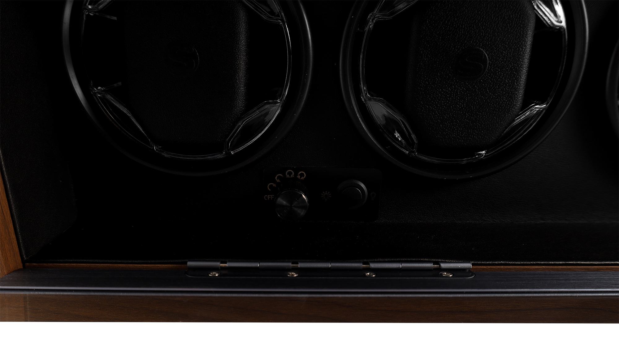 Met zijn afmetingen van 45,5 x 17,5 x 14,5 cm past de winder perfect op een plank of dressoir. De elegante houten behuizing beschermt je horloges betrouwbaar tegen stof, terwijl de transparante kunststof schijf een onbelemmerd zicht op de wijzerplaat biedt. De geïntegreerde verlichting zet je uurwerken in het middelpunt. De horloges liggen veilig op een zacht kussen van imitatieleer dat krassen voorkomt en geschikt is voor een groot aantal bandmaten.