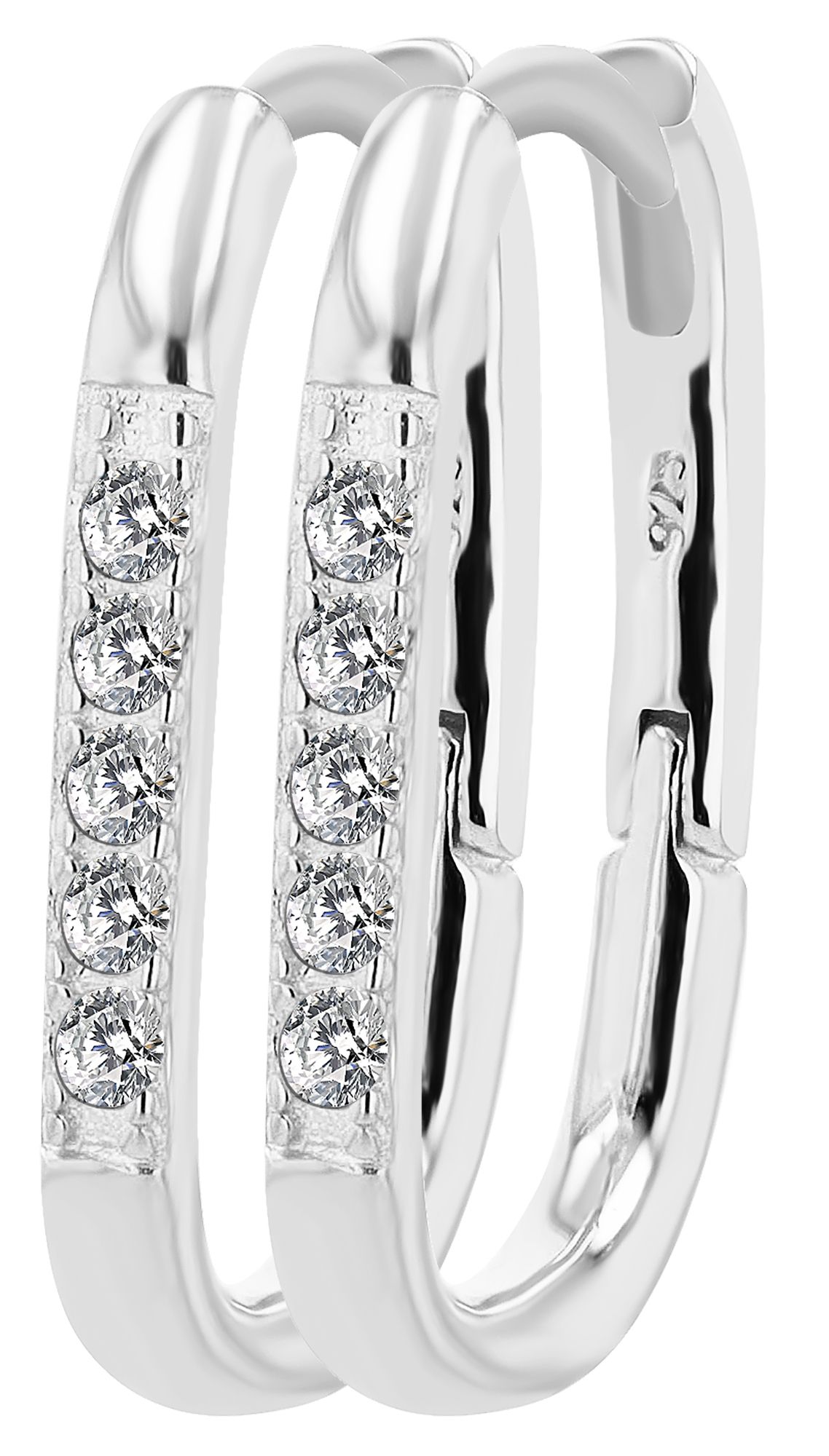 De ovale "Avya" oorbellen worden gekenmerkt door hun unieke elegantie. Met een hoogte van 18 mm en een breedte en dikte van 2 mm is het subtiel en toch aanwezig genoeg om de aandacht te trekken. Het hoogtepunt van dit sieraad zijn de 5 fonkelende zirkonia steentjes, die aan de voorkant op een rij staan en een vleugje luxe toevoegen.