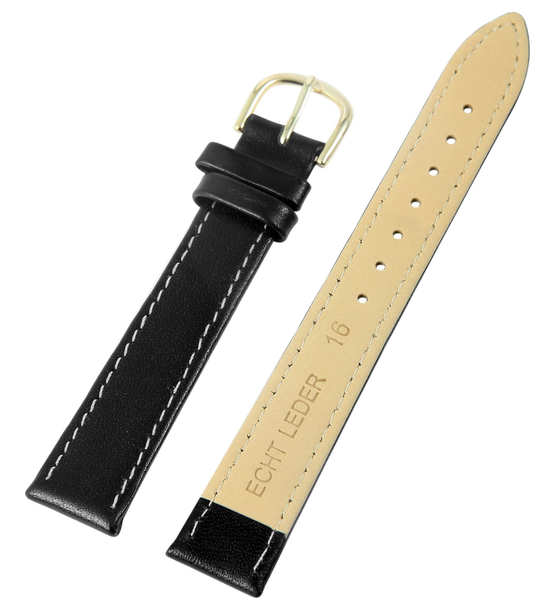 Productinformatie "Basis vervangende riem van echt leer, zwart, glad, 16 mm brugbreedte, gesp, VE12"