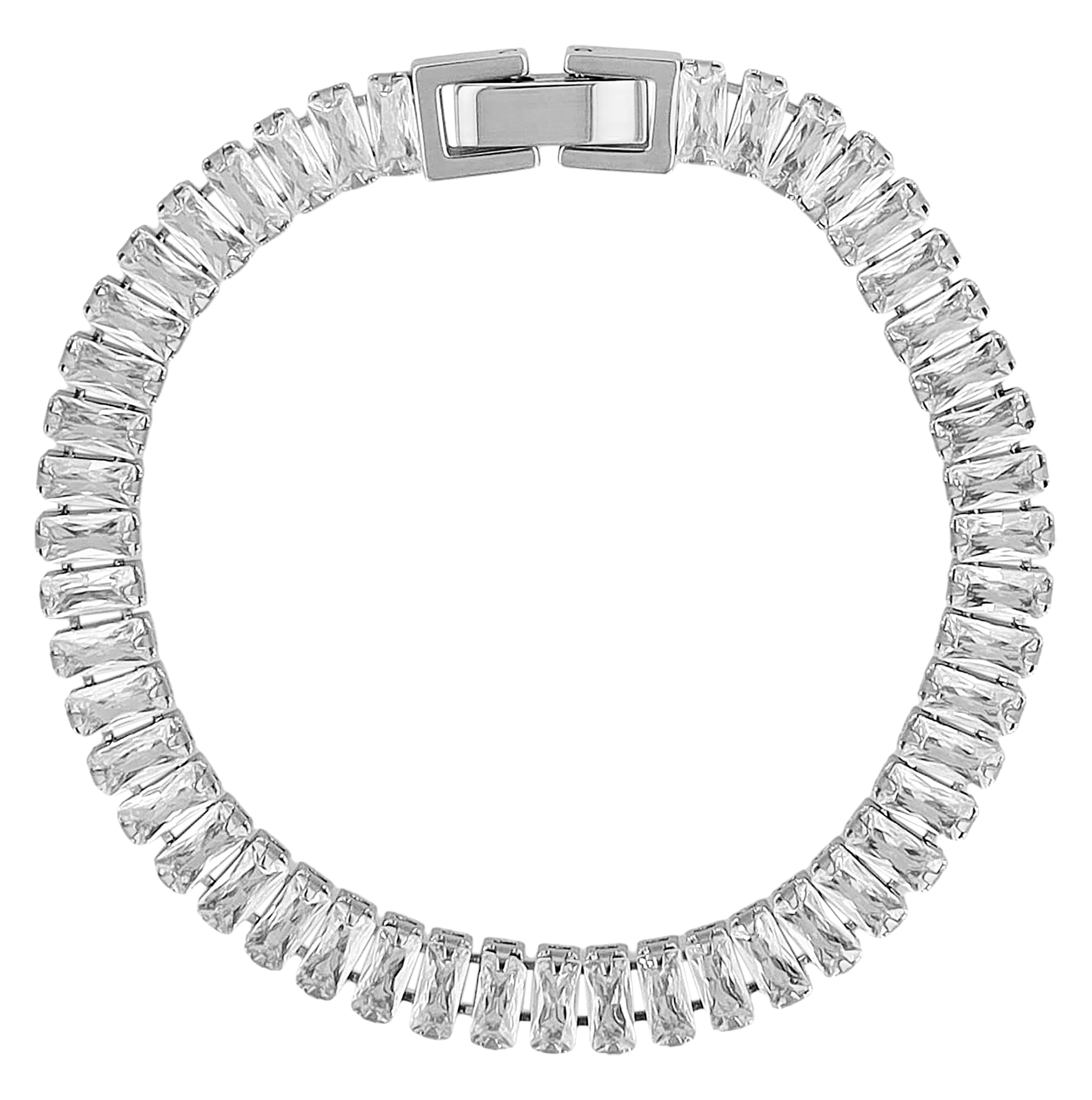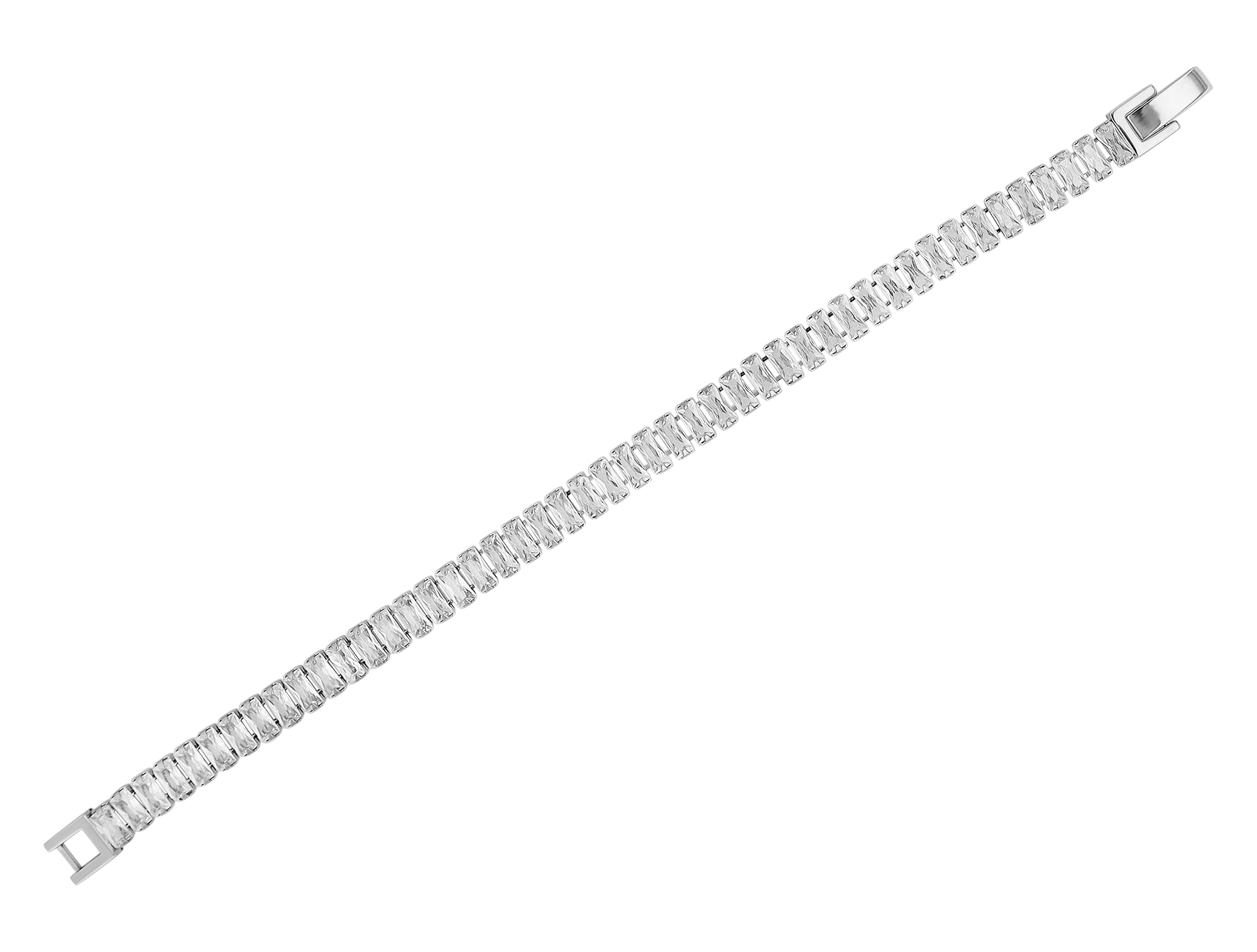 De talrijke slierten baguettevormige witte zirkonia steentjes geven de armband een luxueuze schittering.