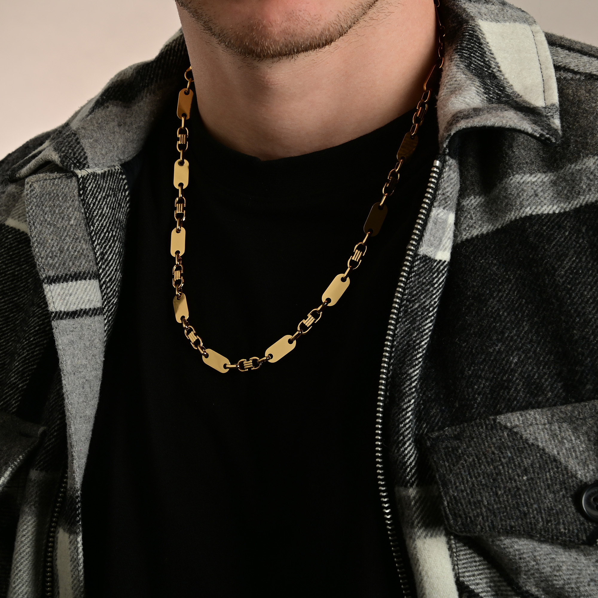 Productinformatie ""Benja", Edelstahl Plattenkette, goldfarbig, 70 cm/ 8 mm"