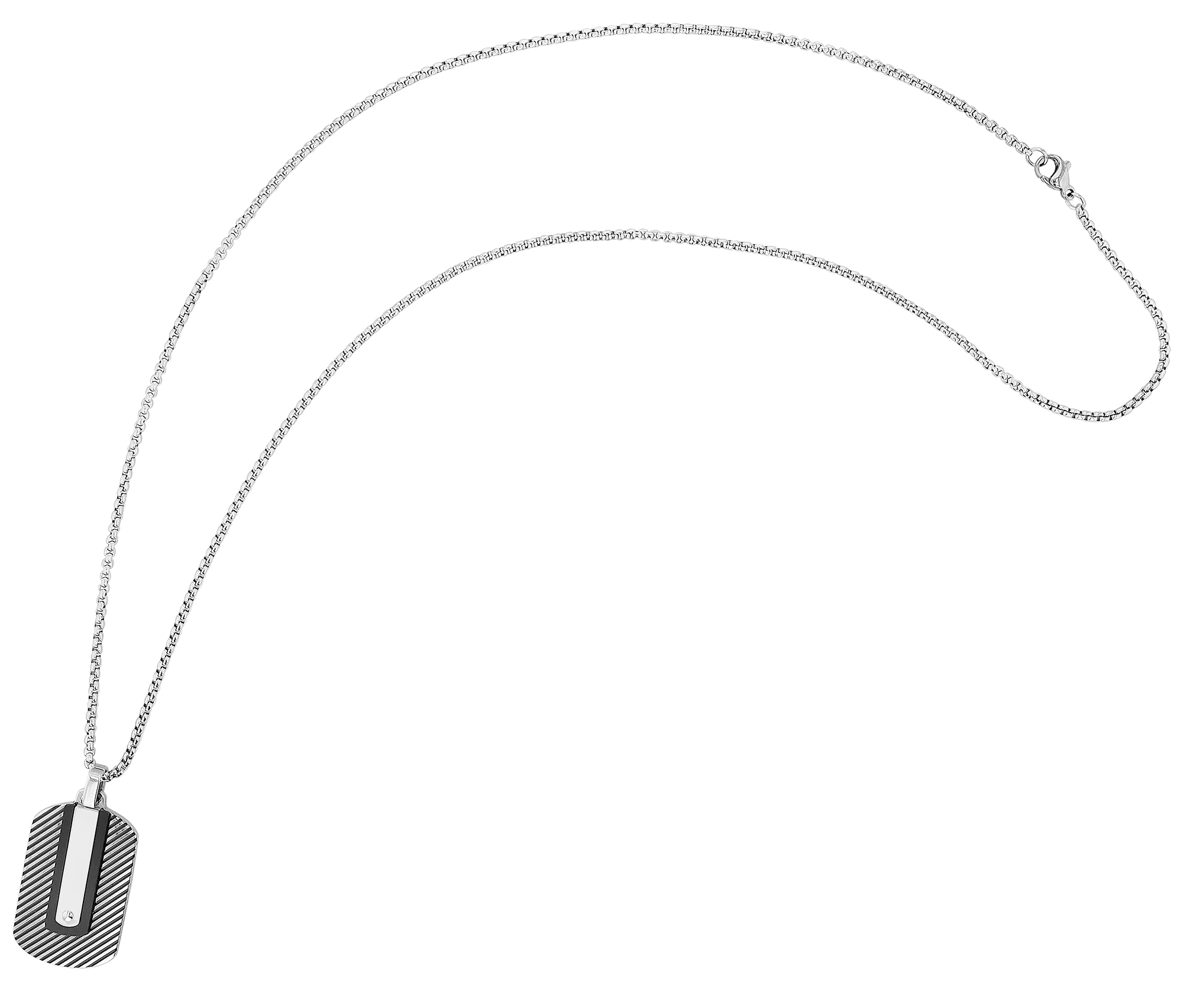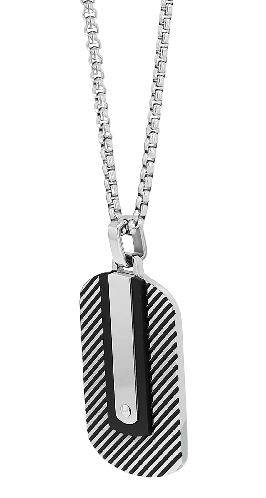 De Akzent halsketting is gemaakt van roestvrij staal in een erwtenpatroon en wordt geleverd met een graveerhanger in de vorm van een dog tag. De hanger is ook gemaakt van robuust en duurzaam roestvrij staal en kan worden gepersonaliseerd met een groot aantal gravures. Het individuele ontwerp maakt dit sieraad tot een onmisbare dagelijkse metgezel voor hem en haar. De graveerhanger heeft een lengte van 35 mm, een breedte van 20 mm en een dikte van 4 mm. De voorkant heeft ook een tweekleurige look, terwijl de achterkant mat zilverkleurig is en ook gegraveerd kan worden. De ketting heeft een totale lengte van 60 cm, een dikte van 2,5 mm en wordt aan de hals bevestigd met een klassieke karabijnsluiting. De gegraveerde ketting is een geweldige all-round blikvanger en voegt een stijlvolle finishing touch toe aan elke outfit. Hij is ook ideaal als cadeau om een heel persoonlijke boodschap over te brengen aan een heel speciaal persoon.