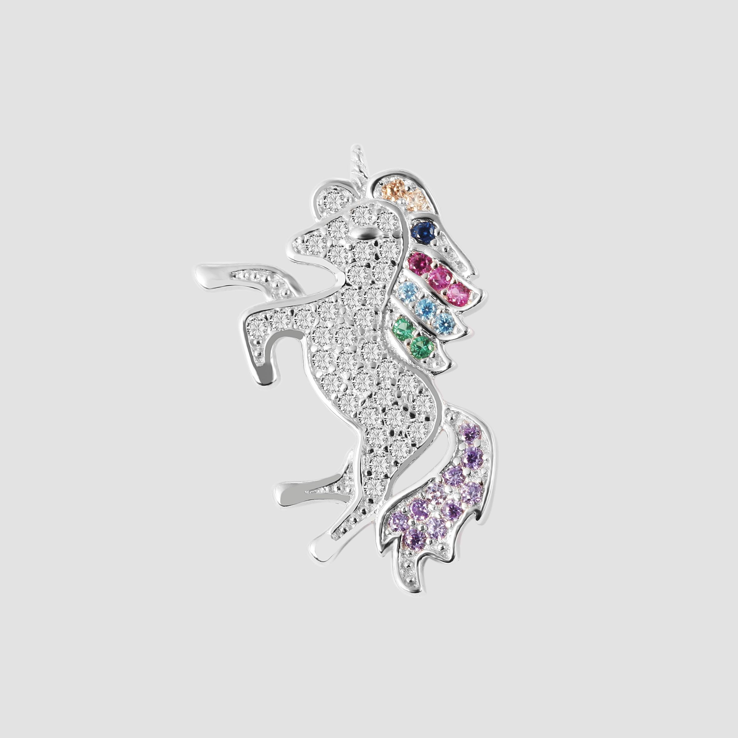 Deze speelse eenhoornhanger is gemaakt van 925 Sterling zilver en is afgewerkt met een hoogwaardige rhodiumlaag. Deze laag beschermt het materiaal tegen aantasting en zorgt ook voor een langdurige glans. 56 zirkonia steentjes sieren de eenhoorn hanger, waaronder 35 witte en 21 gekleurde steentjes, waardoor het silhouet van de eenhoorn fonkelt.