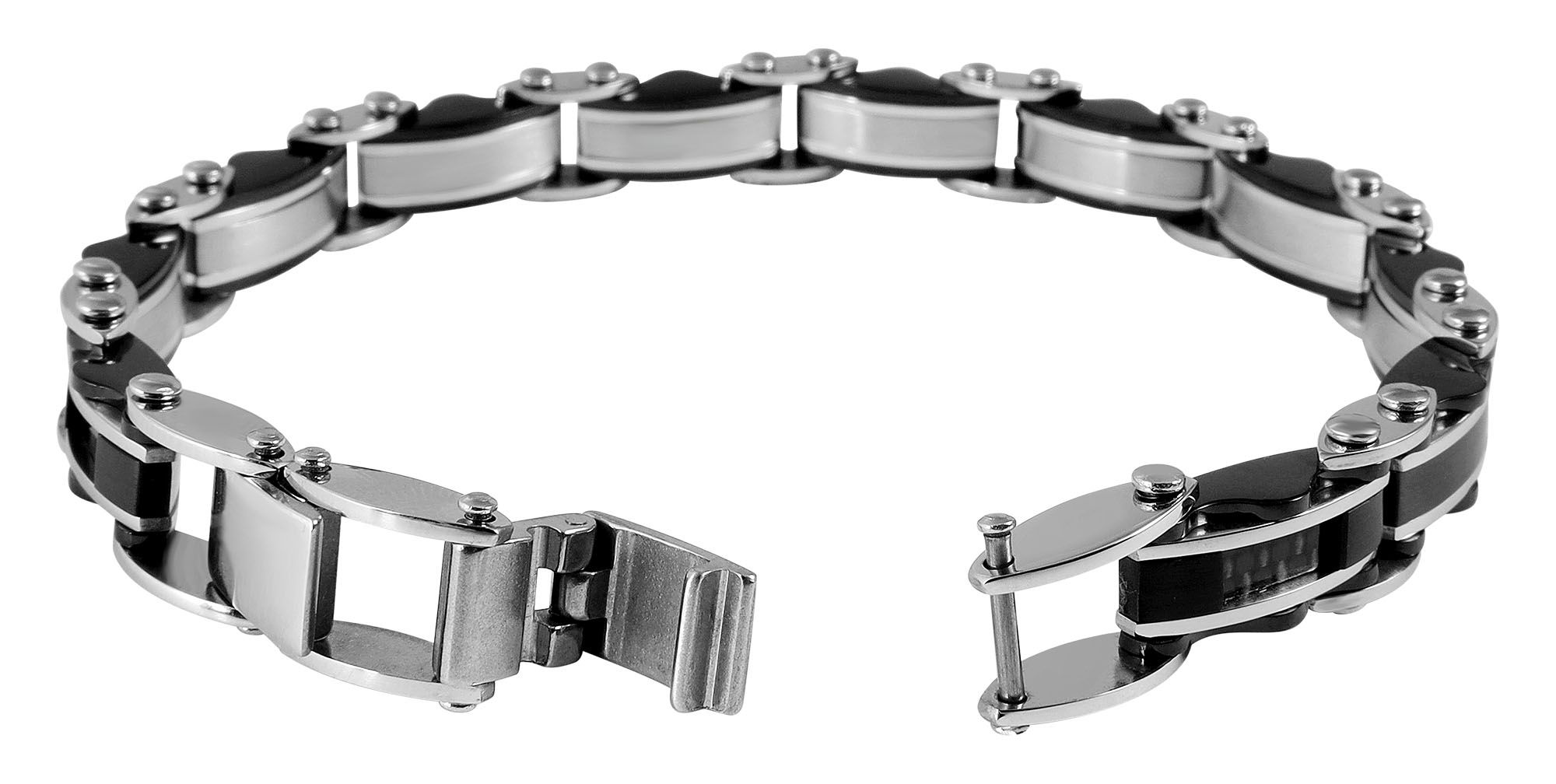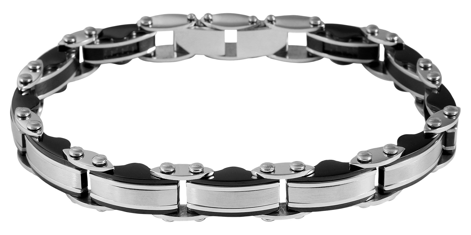 Productinformatie ""Bjarne" Edelstahl Armband, 21 cm + 1 cm, mit schwarzen Elementen, Verlängerung"
