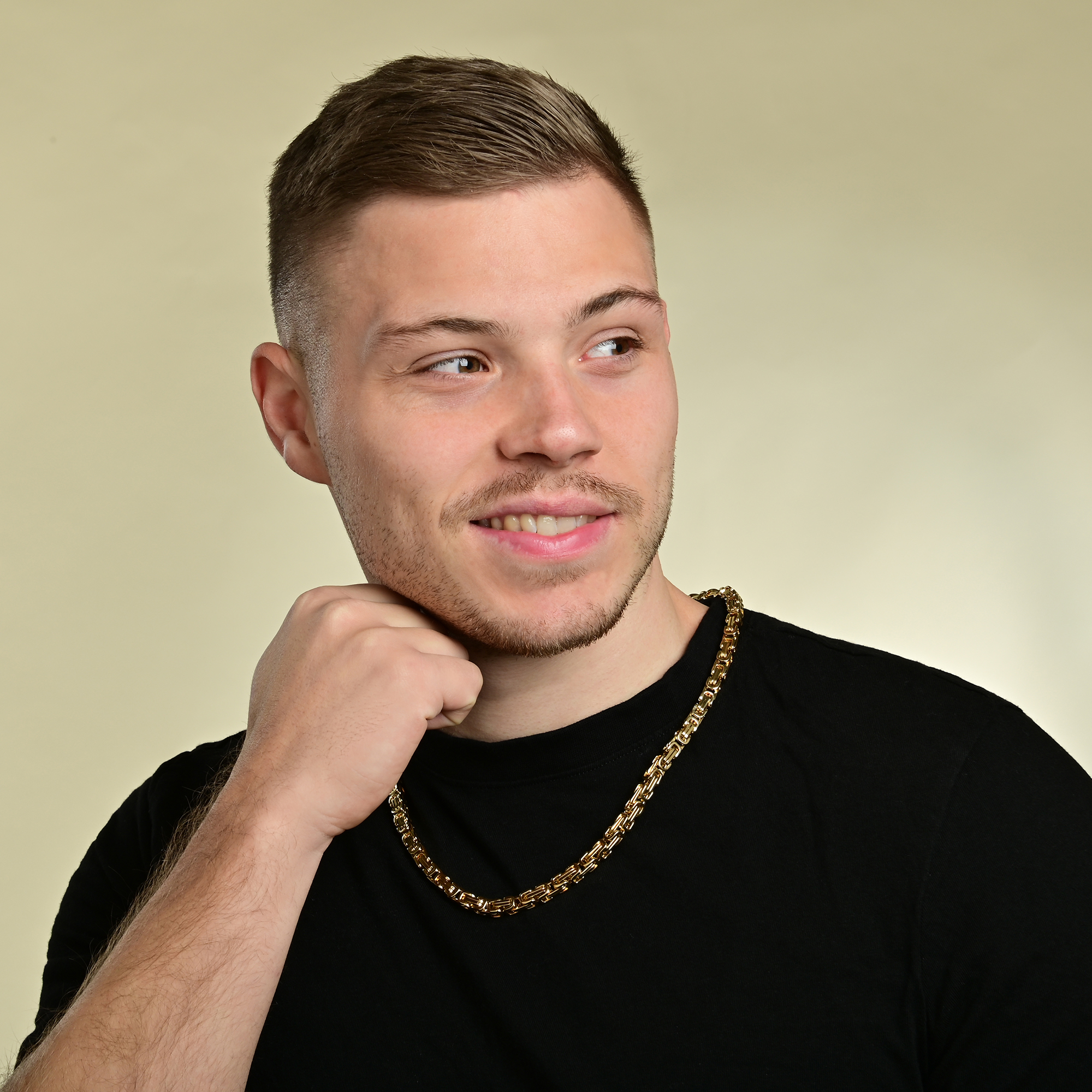 De "Blake"-ketting is een statement stuk en maakt indruk met zijn opvallende ontwerp en robuuste afwerking.