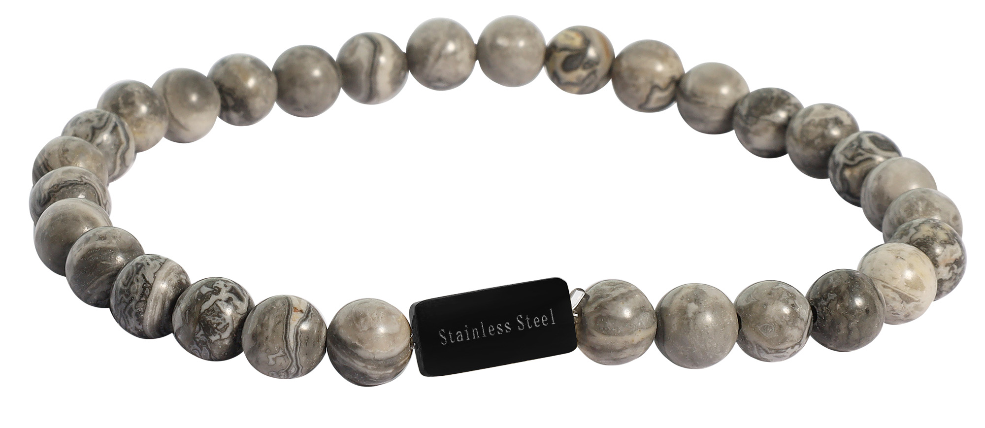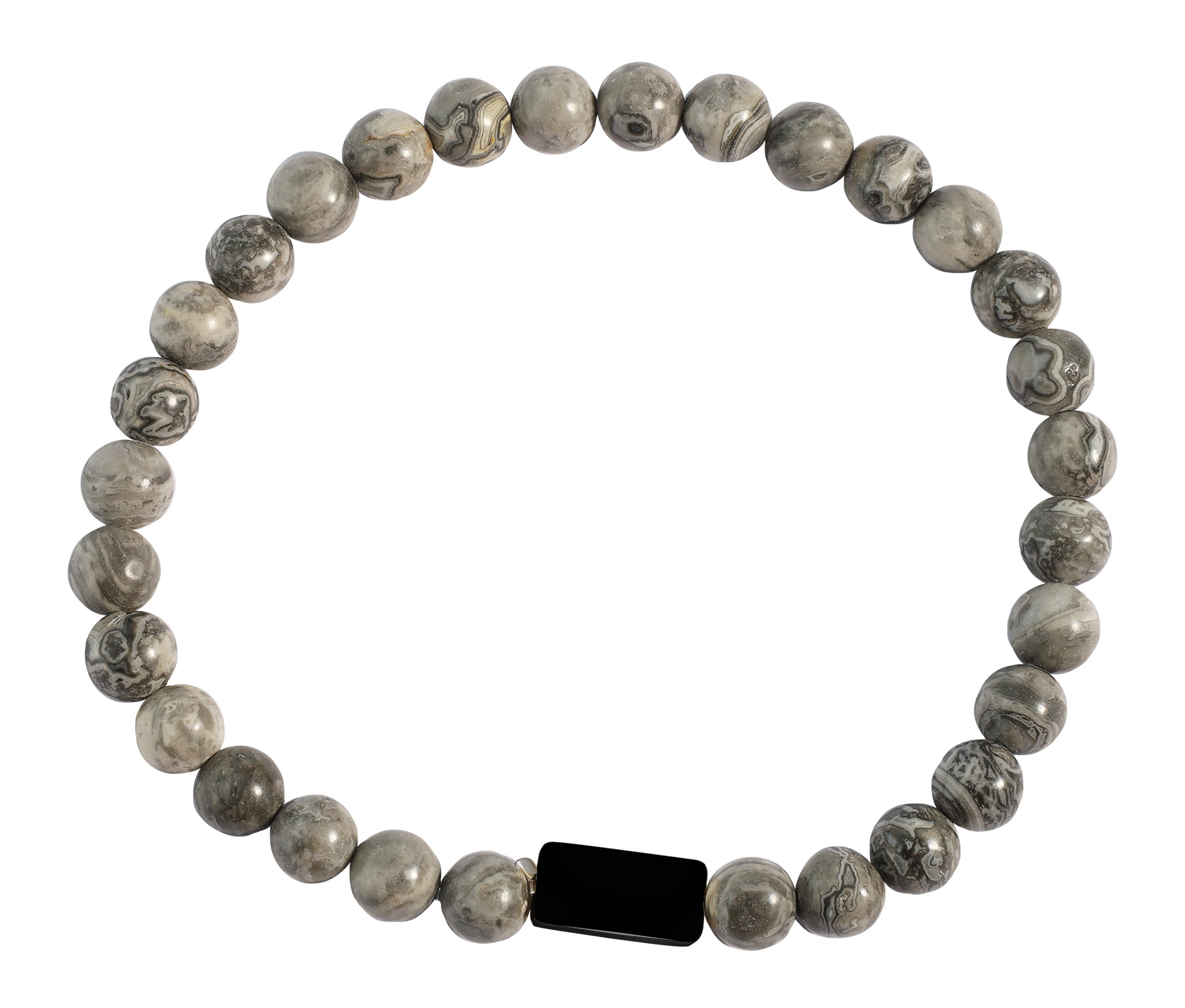Ervaar de mannelijke elegantie van de Akzent herenarmband - een krachtig sieraad dat ieders aandacht trekt met zijn charisma en de persoonlijkheid van de drager perfect onderstreept. Deze opvallende armband is gemaakt van kostbaar natuursteen, dat een indrukwekkend aura uitstraalt. De zorgvuldig geselecteerde bolvormige kralen met een diameter van 6 mm vormen een harmonieuze eenheid die de pols omtovert tot een majestueus hoogtepunt. De edele glans van de bollen vangt het licht en zorgt voor een mysterieuze en krachtige aanwezigheid.