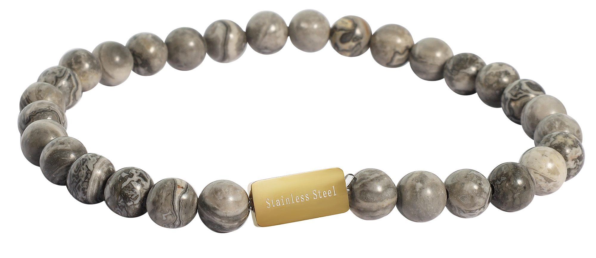 Productinformatie ""Bodhi" Akzent Kugelarmband, Naturstein (net jasper), gravurfähiges Edelstahlelement"