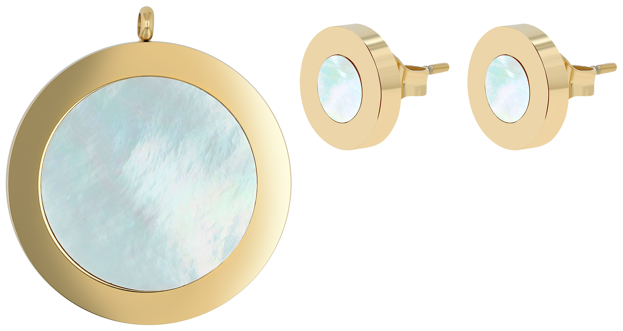 Productinformatie ""Boram" Edelstahl Schmuckset - Anhänger und Ohrstecker, goldfarben/ Perlmutt"