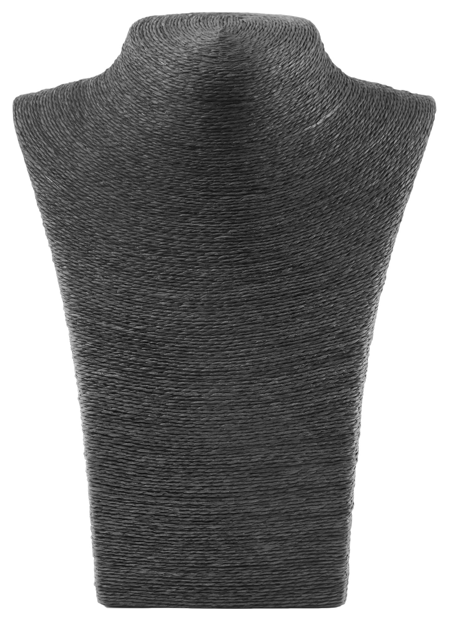 De sieradenhouder in een eenvoudige bustevorm is gemaakt van bastvezel, deze vezels zorgen voor een hoogwaardige en decoratieve uitstraling. De buste is zwart en is ideaal voor het tentoonstellen van sieraden. Op de toonbank, in de etalage of in de showroom, de buste slaat overal een goed figuur. De afmetingen van de displaystandaard zijn 27 cm lang, 21 cm breed en 12 cm dik.