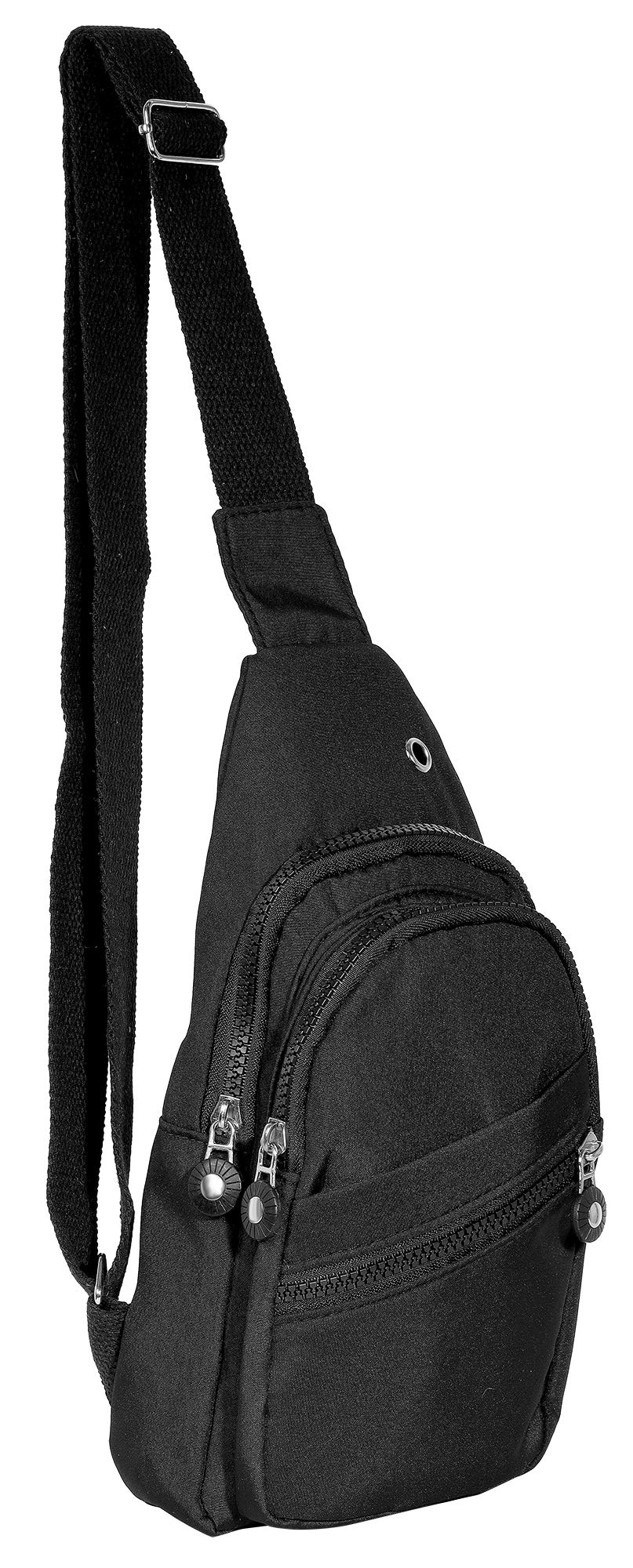 Productinformatie "Borsttas/crossbodytas, textiel met verstelbare riem, 4 stuks/verpakking, zwart"