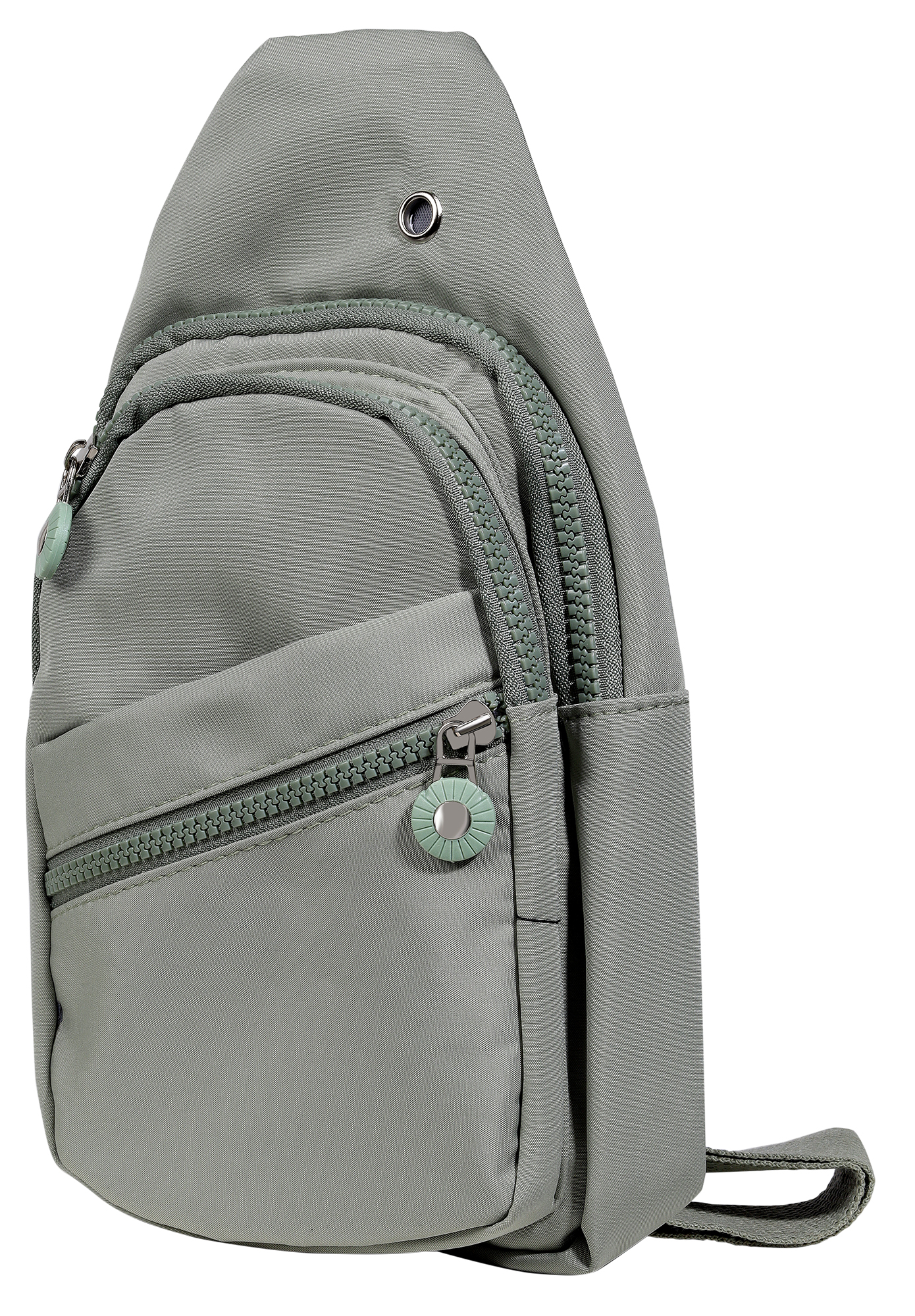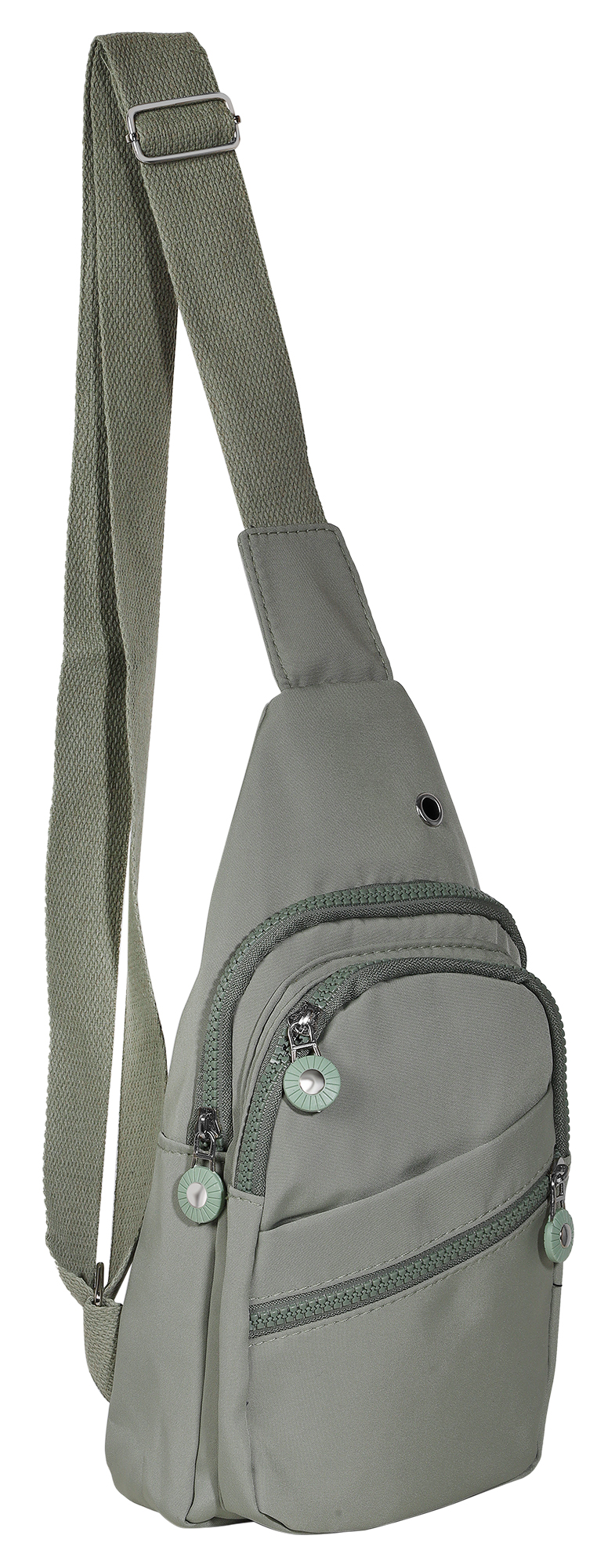Ontwerp 3 - Textielen borsttas/cross-body, eenvoudig, 3 ritsvakken aan de voorkant, een insteekvak aan de buitenkant, een insteekvak in het hoofdvak, een ander ritsvak is modieus schuin geplaatst in het midden van het insteekvak aan de voorkant voor snelle toegang, een metalen oog rechtsboven dient als decoratief detail en om een oplaadkabel door te voeren - ideaal voor op reis