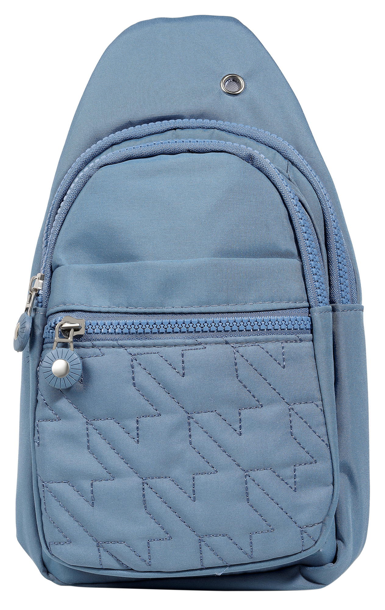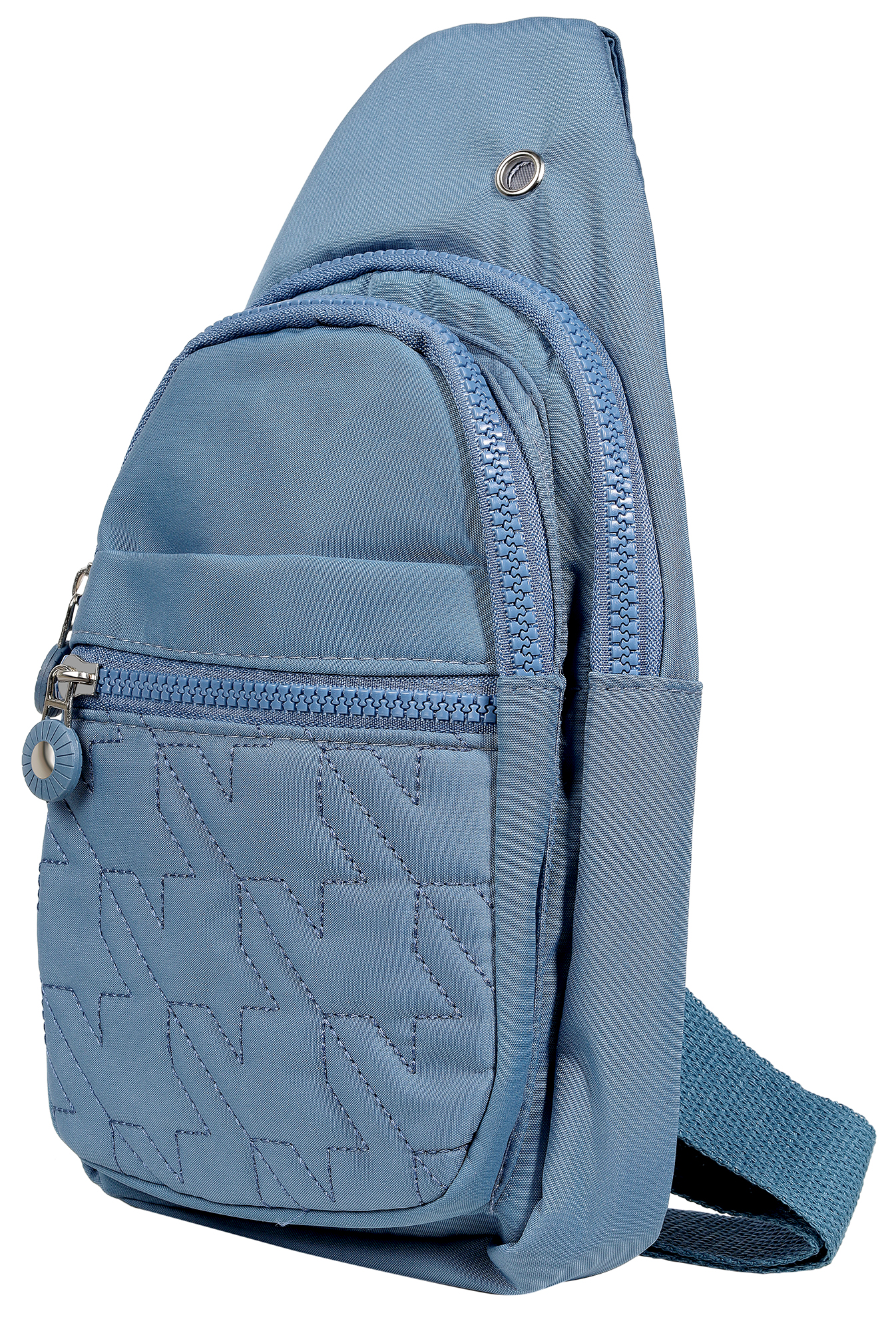 Ontwerp 3 - Textielen borsttas/cross-body, eenvoudig, 3 ritsvakken aan de voorkant, een insteekvak aan de buitenkant, een insteekvak in het hoofdvak, een ander ritsvak is modieus schuin geplaatst in het midden van het insteekvak aan de voorkant voor snelle toegang, een metalen oog rechtsboven dient als decoratief detail en om een oplaadkabel door te voeren - ideaal voor op reis