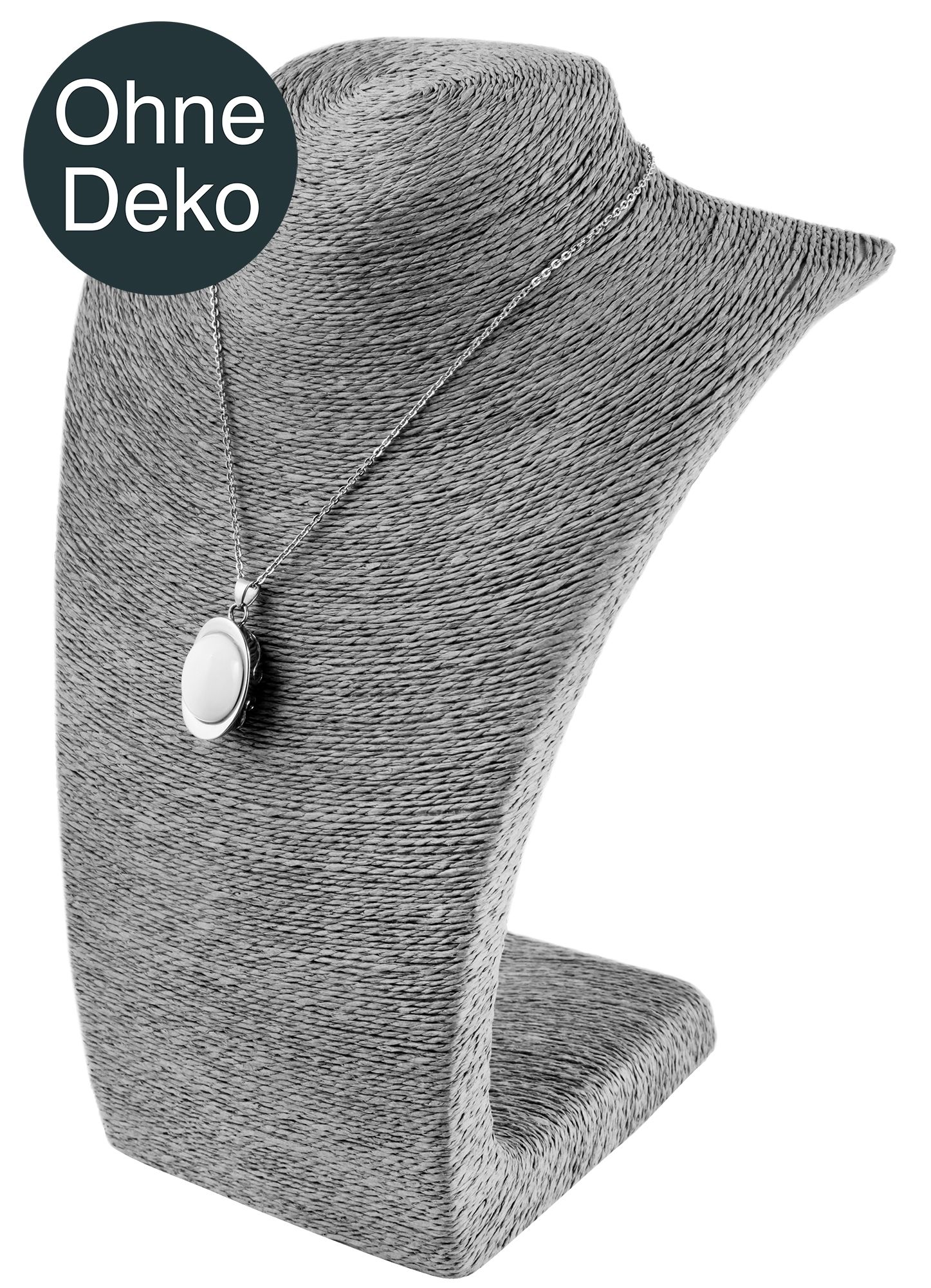 De sieradenhouder in een eenvoudige bustevorm is gemaakt van bastvezel, deze vezels zorgen voor een hoogwaardige en decoratieve uitstraling. De buste is ideaal voor het tentoonstellen van sieraden. Op de toonbank, in de etalage of in de showroom, de buste slaat overal een goed figuur. De afmetingen van de displaystandaard zijn 27 cm lang, 21 cm breed en 12 cm dik.
